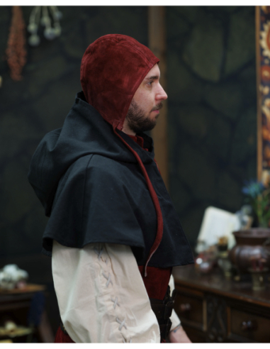 Pour parfaire la tenue médiévale, les crespines peuvent être associées à des bonnets et capelines matelassées, qui apportent une touche distinctive et fonctionnelle. Par exemple, la capeline matelassée modèle Eckwin en noir ou la cagoule en cuir de daim Akku avec couvre-bouche sont des accessoires qui non seulement améliorent l’esthétique mais offrent également une protection supplémentaire contre les intempéries.