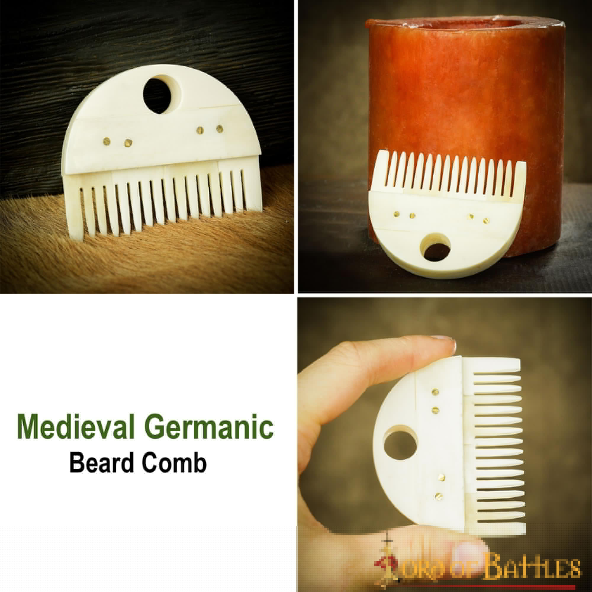 Notre peigne à barbe médiéval est l'accessoire parfait pour les hommes à la recherche d'un look élégant et soigné. Il allie parfaitement l'expérience historique à l'utilisation quotidienne, vous permettant de profiter d'une barbe bien entretenue tous les jours.