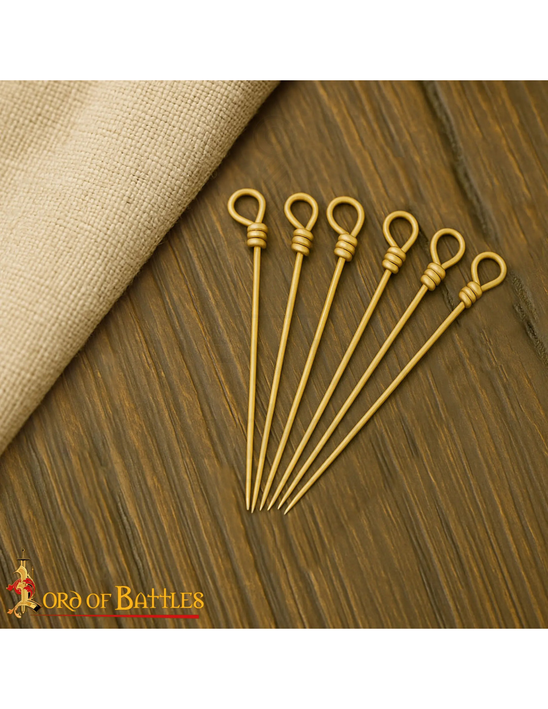 ¡Découvrez l'élégance médiévale avec le Set de 6 Épingles pour Vêtements en Laiton de Lord of Battles ! Imaginez un monde où la mode rencontre l'histoire, où la grâce et le charme s'unissent dans chaque détail. Si vous êtes encore à la recherche d'accessoires historiques pour maintenir vos vêtements élégants en place, ¡vous êtes au bon endroit ! Ces épingles pour vêtements sont bien plus que de simples accessoires ; elles sont une déclaration de style intemporelle.