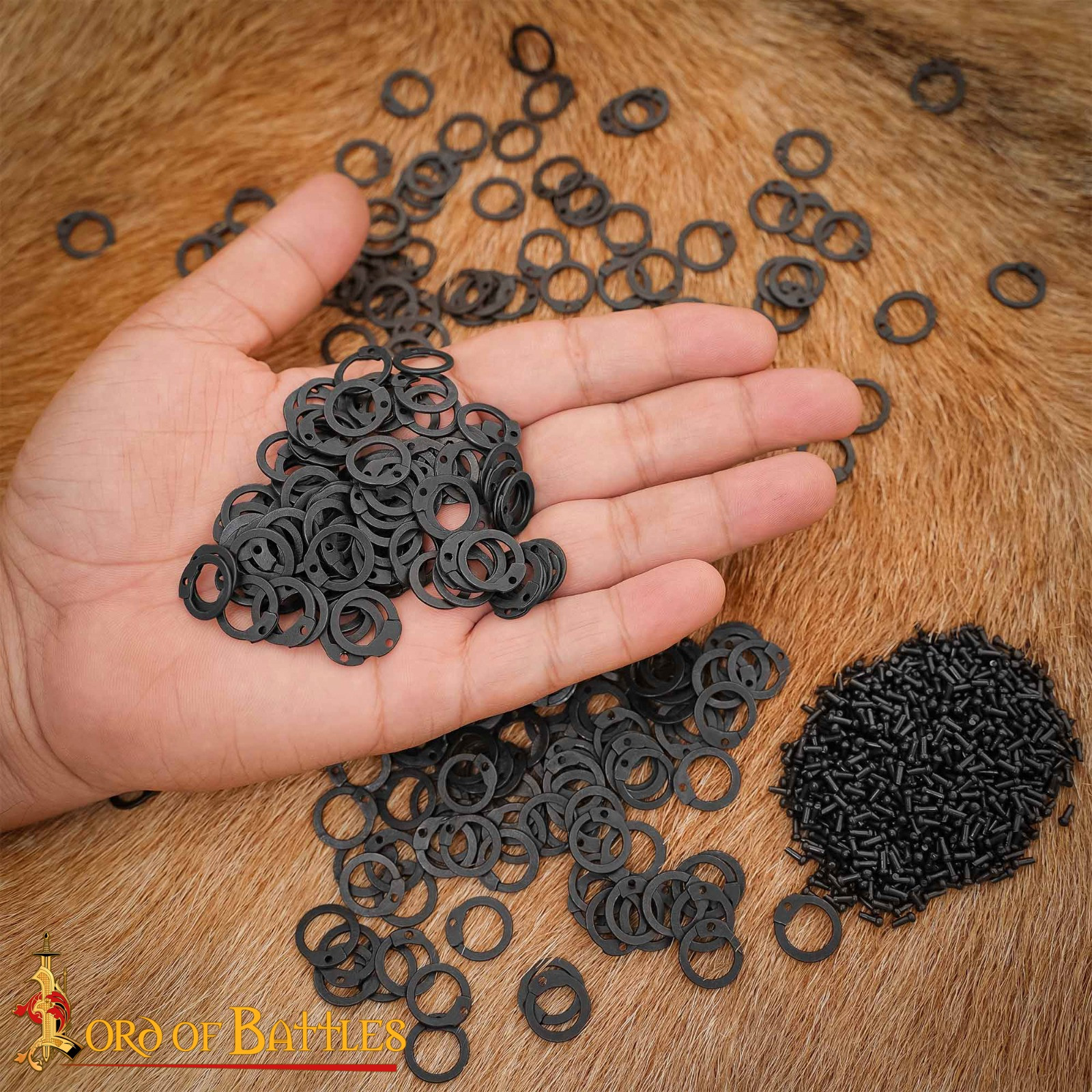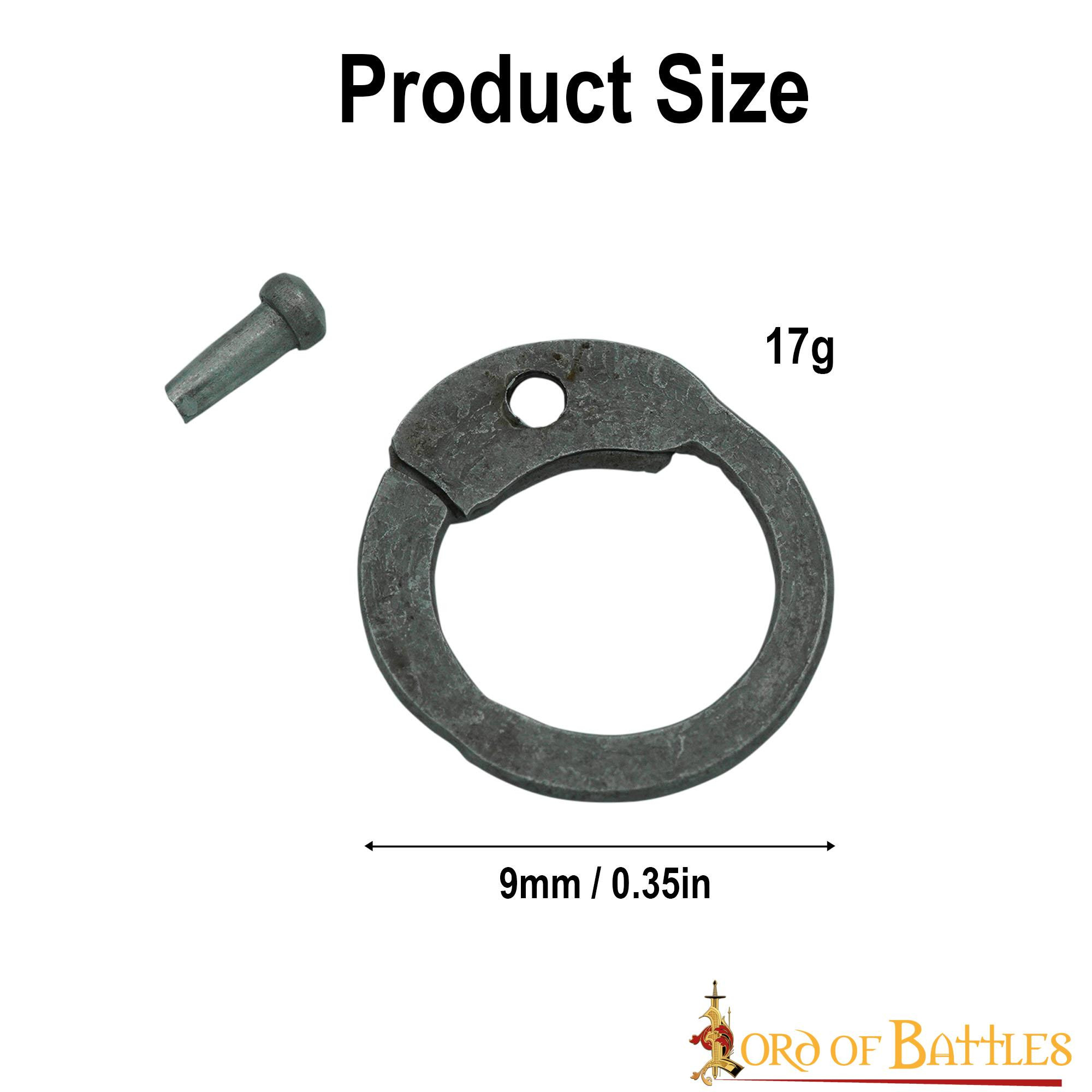 Anneaux de cotte de mailles plats avec rivets en acier huilé (9 mm.)