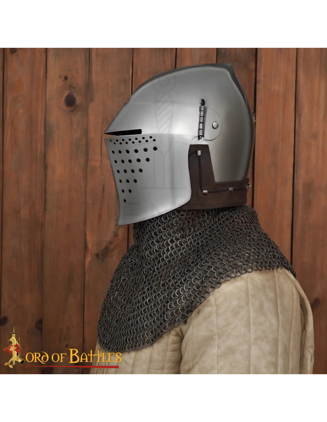 Conçu pour couvrir la gorge, les épaules et la partie supérieure de la poitrine, il facilite l'intégration avec les gambesons ou les kits complets, tout en conservant la mobilité nécessaire pour les techniques de combat et les déplacements. Étant monté selon le modèle traditionnel 4-en-1 et riveté, il apporte une sensation de solidité et une authenticité visuelle qui distinguent votre équipement de toute pièce générique.