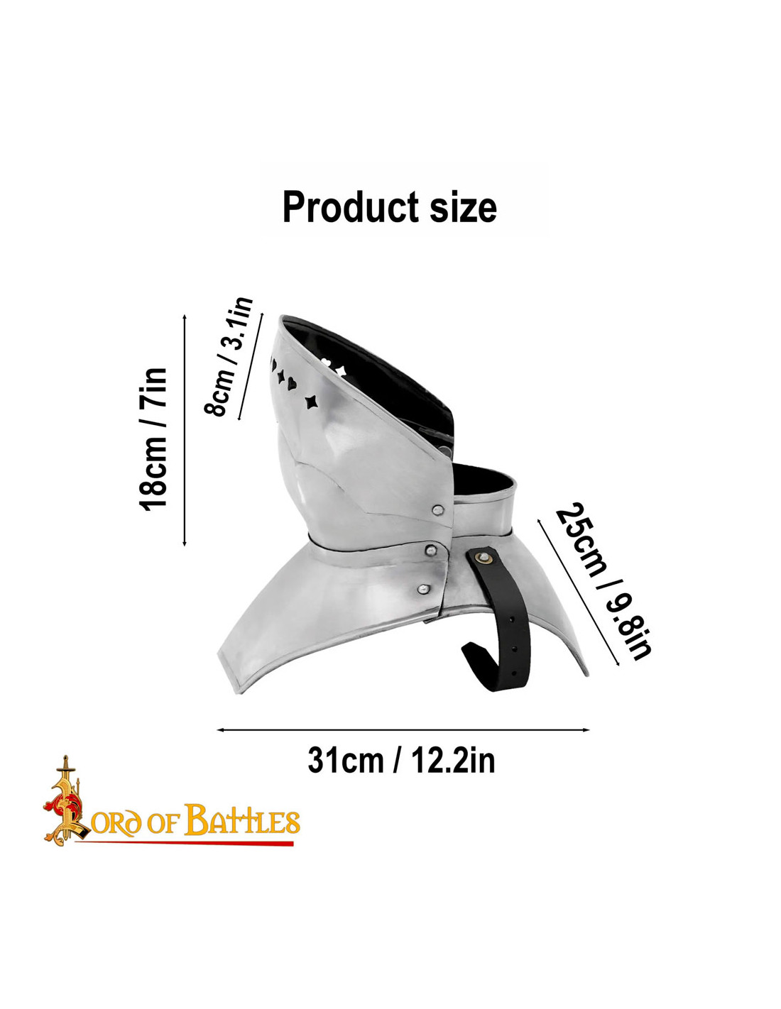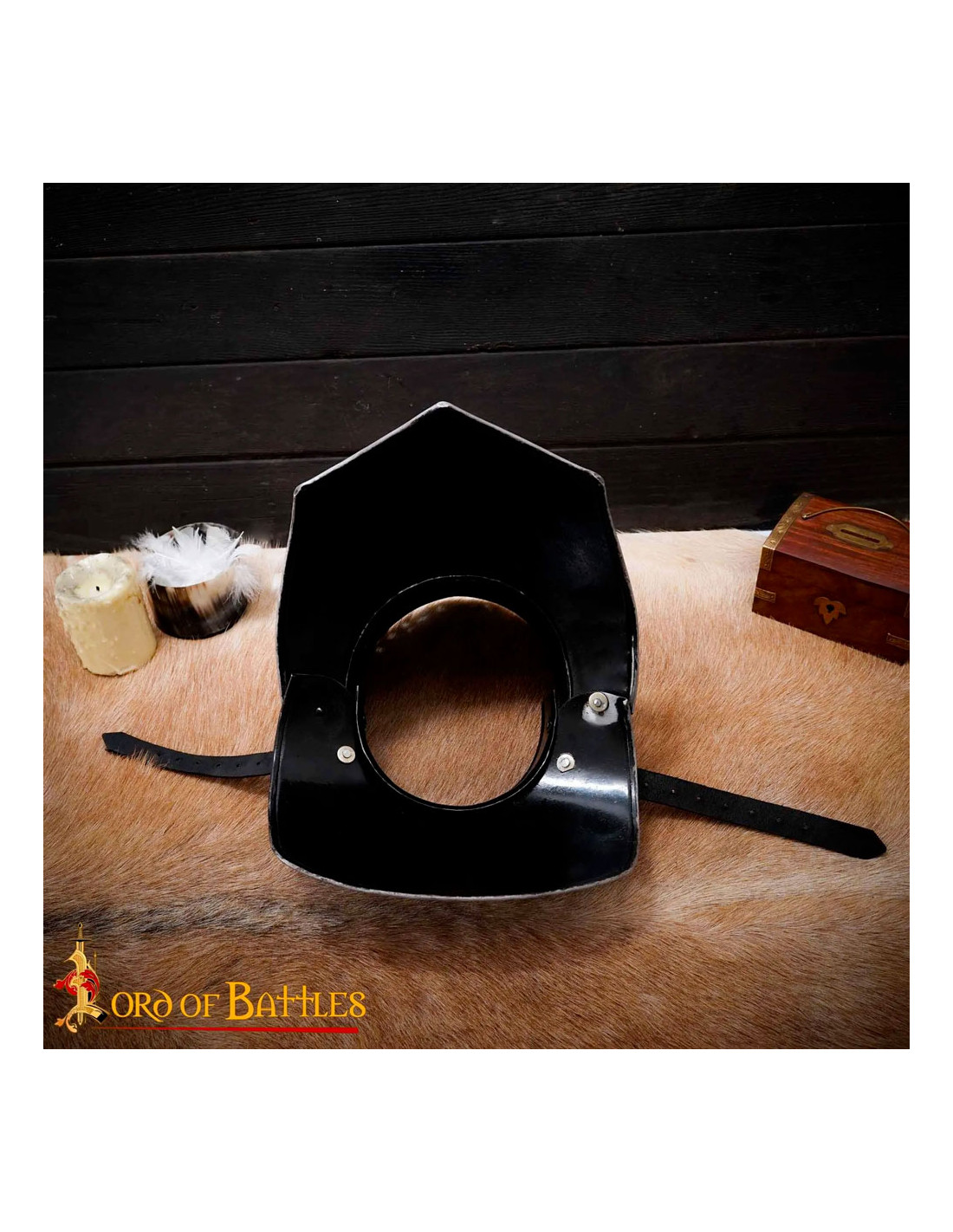 Le Gorjal gothique avec masque pliant est fabriqué par la célèbre marque Lord of Battles, connue pour la haute qualité et la durabilité de ses produits. Vous pouvez être sûr que ce gorgerin a été créé selon les normes et les matériaux les plus élevés.