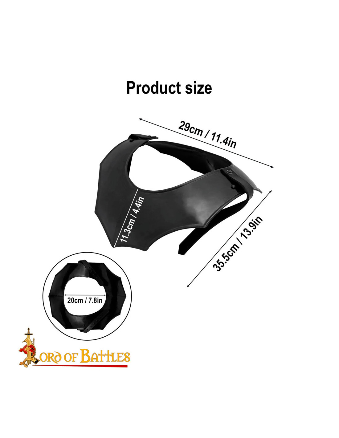 Ne risquez pas votre sécurité et votre style avec des imitations bon marché. Choisissez le gorget médiéval simple au fini noirci, avec sa finition saisissante et sa solide construction en acier doux de calibre 18. Obtenez le vôtre maintenant et sentez-vous confiant et puissant dans chaque bataille !