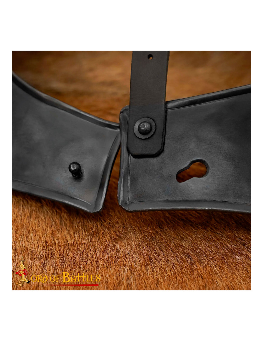 Démarquez-vous de la foule avec le gorget médiéval simple au fini noirci. Cet accessoire impressionnant est habilement fabriqué à la main à partir d'acier doux de calibre 18, ce qui en fait le compagnon idéal de vos tenues de GN et de reconstitution.