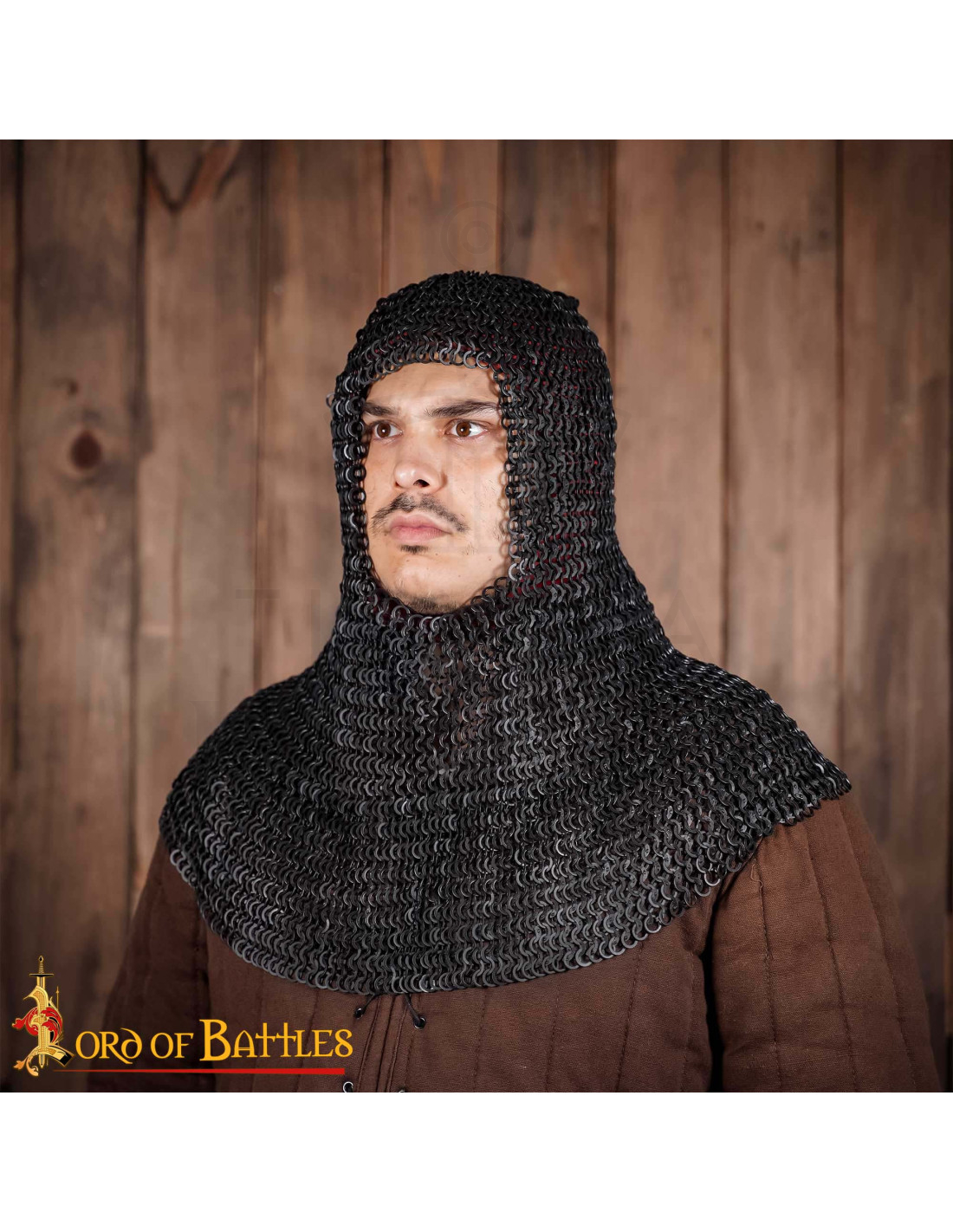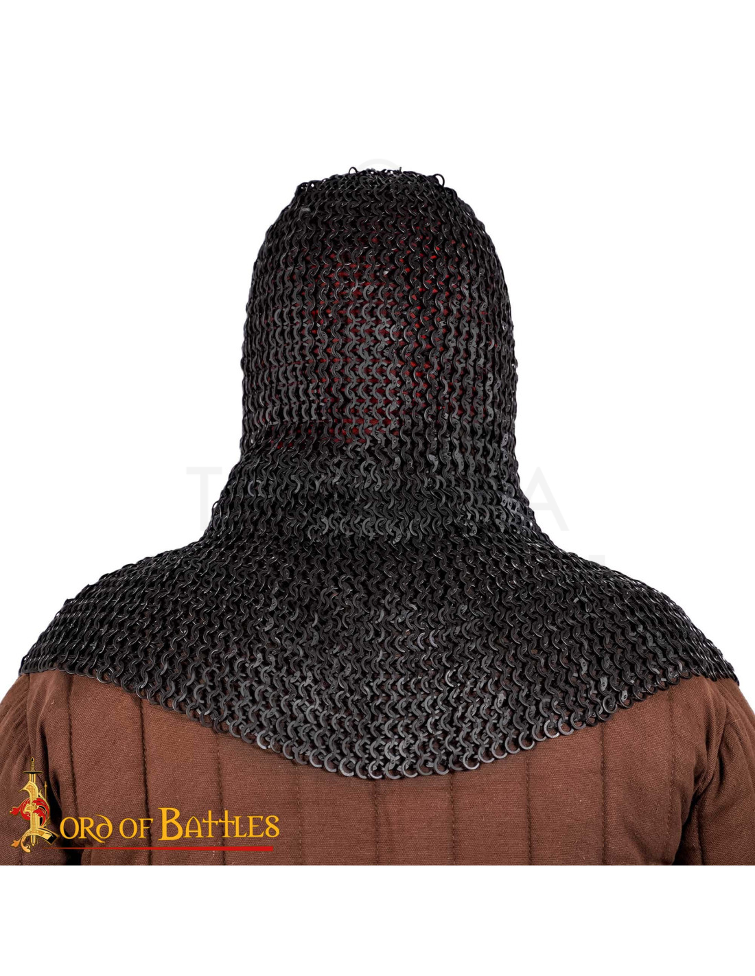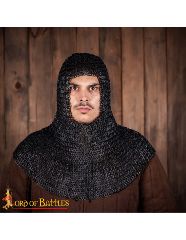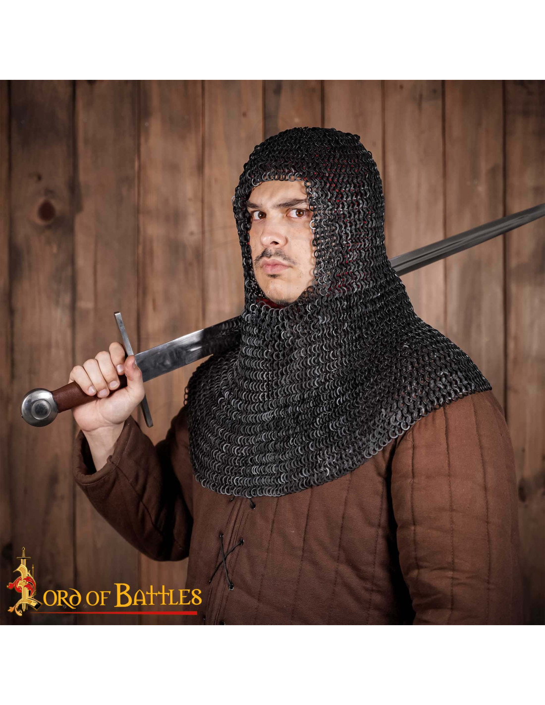 Le montage avec des anneaux plats et rivetés offre une sensation de robustesse que l'on perçoit en la portant, procurant sécurité lors des répétitions, des combats chorégraphiés ou des longues journées de reconstitution, tout en maintenant la flexibilité nécessaire pour des mouvements réels et naturels. Vous pouvez la porter sous un casque ou combinée avec des rembourrages pour plus de confort, facilitant son intégration avec le reste de l'équipement sans complications.