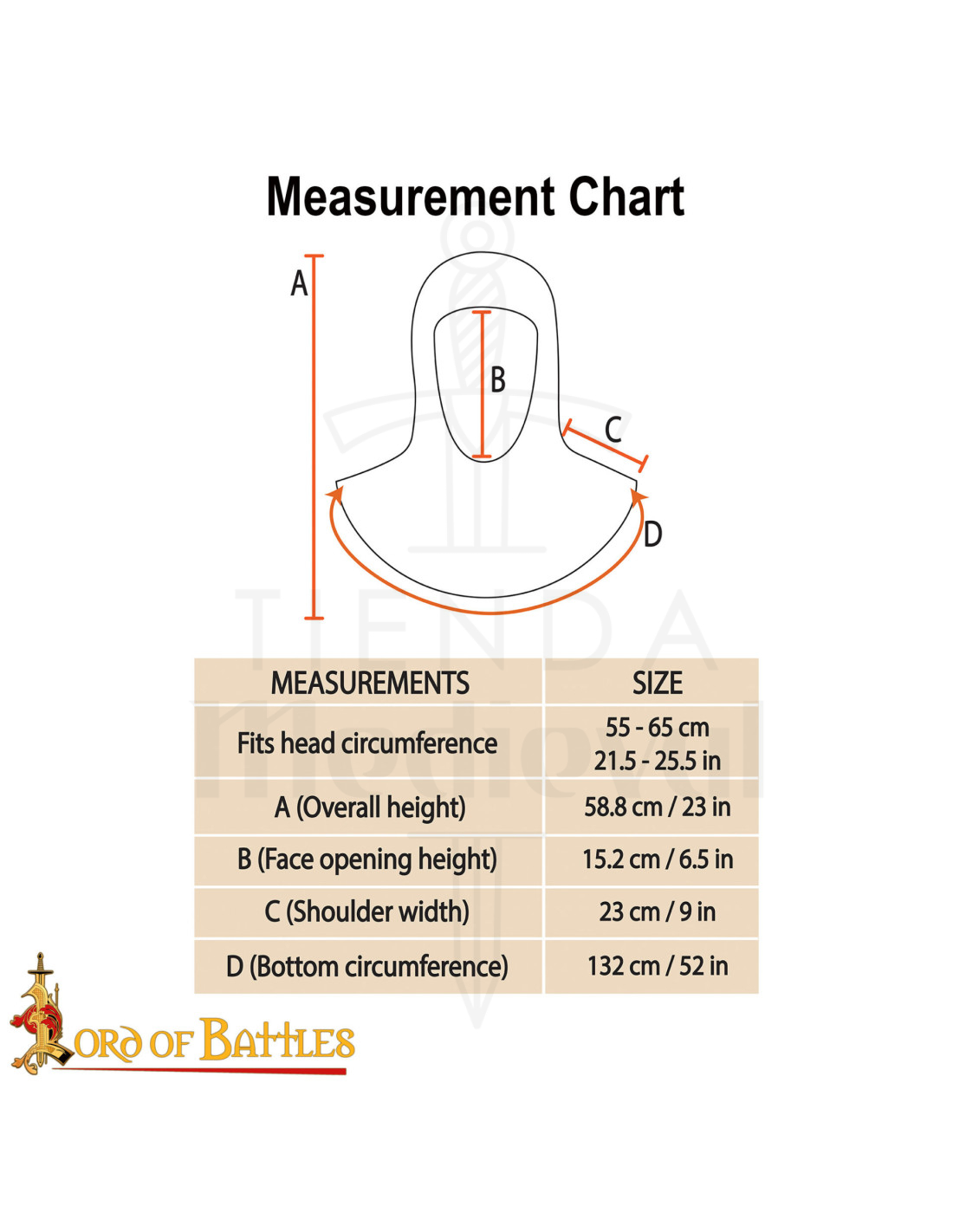 Cette pièce transforme la protection traditionnelle en une expérience confortable et pratique, grâce à son tissu entrelacé qui s'adapte à la forme de la tête, du cou et des épaules, sans restreindre la mobilité. Sa finition sombre évite les reflets indésirables lors de spectacles nocturnes et ajoute un aspect rude et travaillé qui valorise toute reconstitution historique ou caractérisation dramatique.