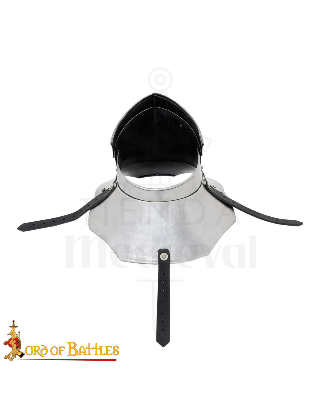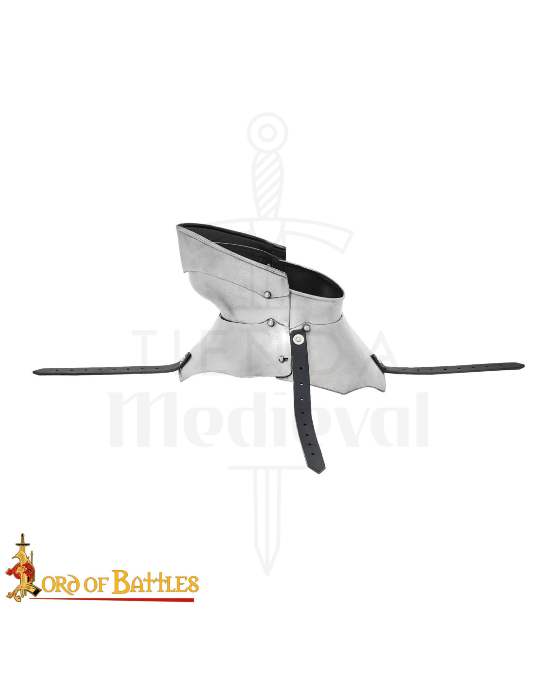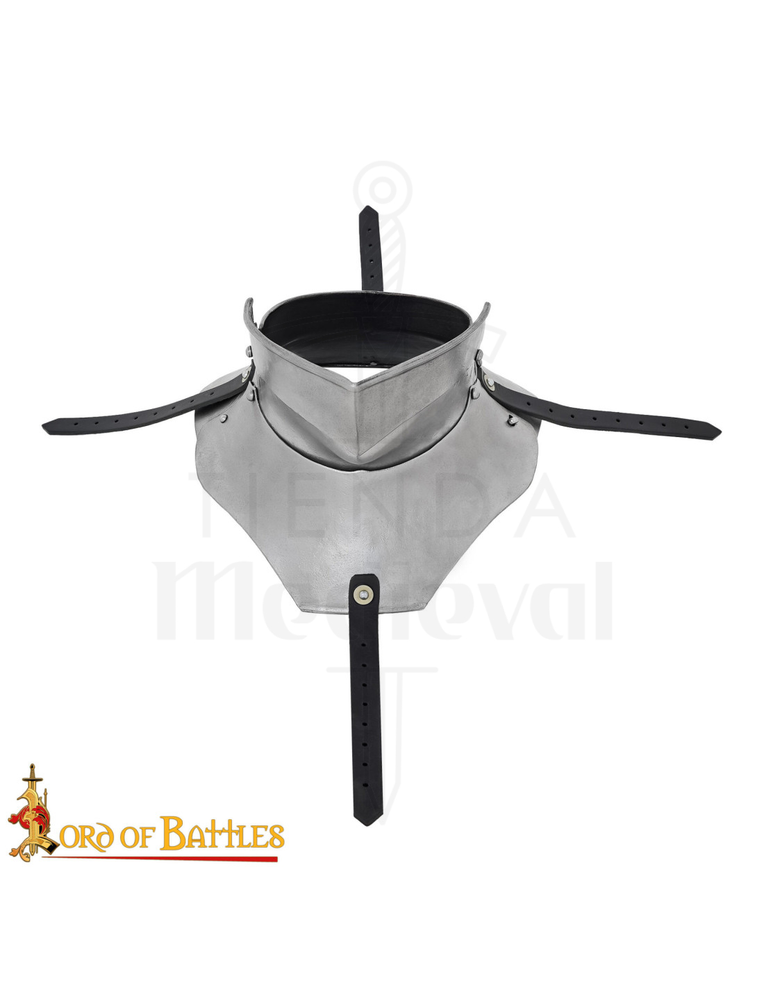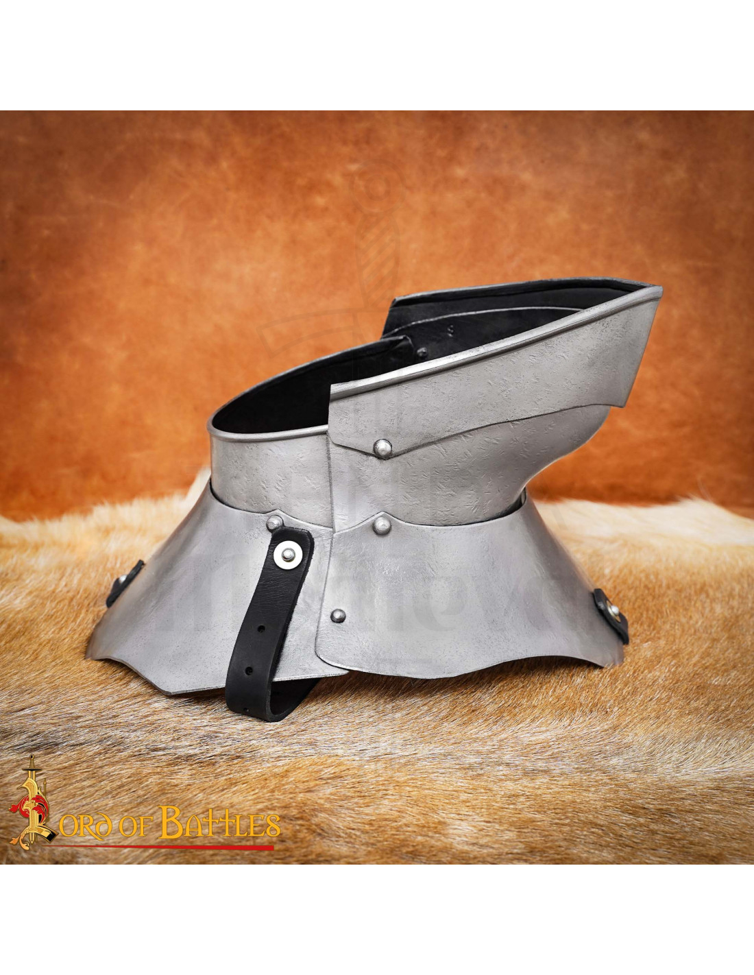 Ce gorjal fait à la main allie protection et liberté, grâce à son bevor mobile qui permet de soulever la plaque frontale avec aisance, laissant parler la mobilité quand vous en avez le plus besoin. Le design couvre le cou et la partie supérieure de la poitrine, offrant un sentiment de sécurité qui n’est pas oppressant durant de longues journées d'événements ou d'essais.