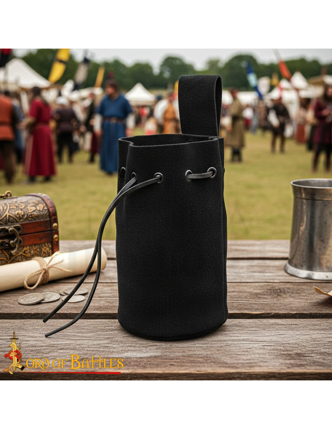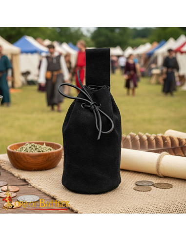La finition noire lui confère une grande polyvalence, s'harmonisant avec des costumes de reconstitution historique ou des looks urbains contemporains. L'association du cordon et du cuir crée une fermeture qui protège vos objets personnels, et la confection pensée pour une utilisation répétée garantit une sensation de résistance sans perdre cette texture agréable au toucher.
