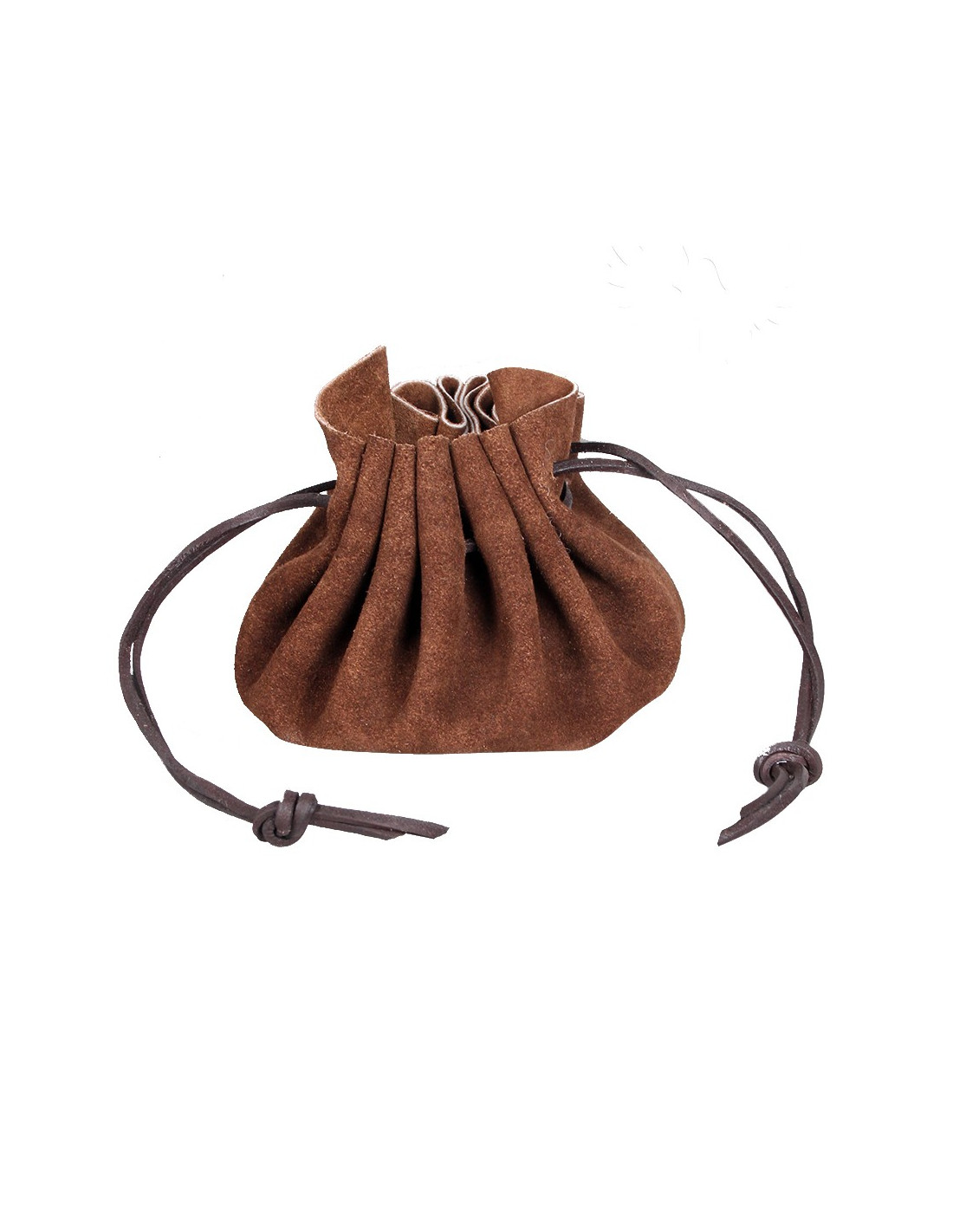 Ce petit sac, confectionné en croûte de cuir de grande qualité, possède une fermeture à cordon qui vous permettra de sécuriser vos affaires pendant que vous arpenterez les chemins de la fantaisie médiévale. Son design est fidèle aux sacs authentiques utilisés à cette époque et vous pourrez l'accrocher à votre ceinture grâce à son format pratique.
