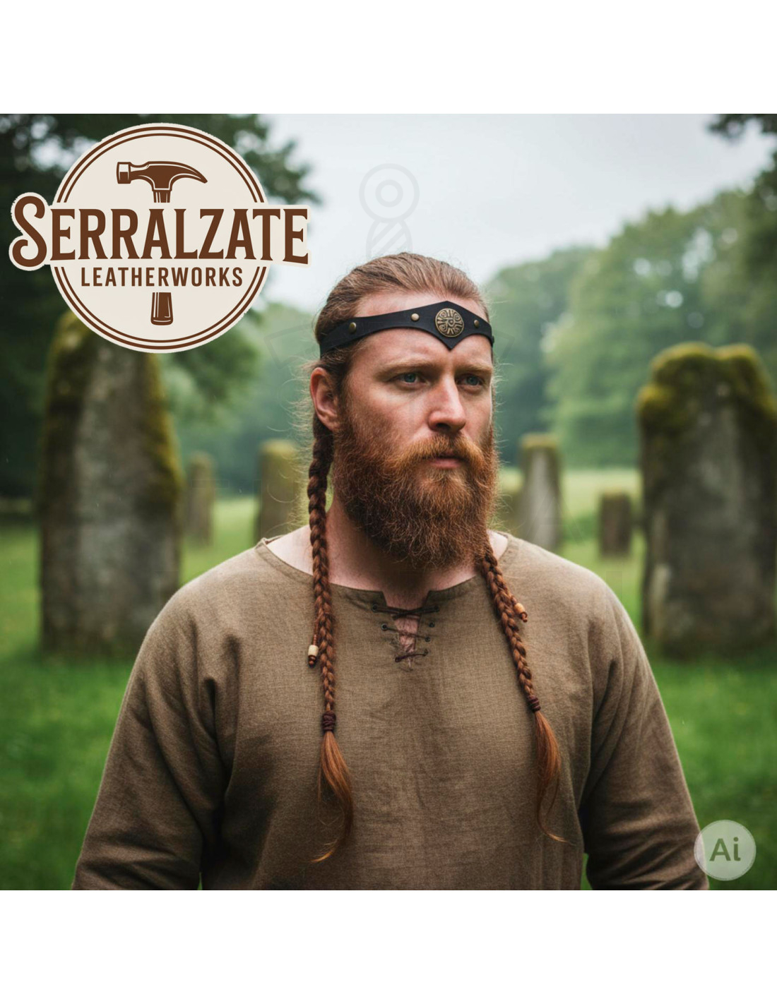 Son design protège le front avec cette élégance délicate apportée par l'ornement métallique avec motifs celtiques et rivets, mettant en valeur des détails qui reflètent l'histoire et la tradition, idéal pour les personnes appréciant des accessoires avec du caractère et de l'esprit. L'ajustement à l'arrière, grâce à un cordon en cuir, garantit un confort parfait et un ajustement personnalisé, facilitant son port en différentes occasions.