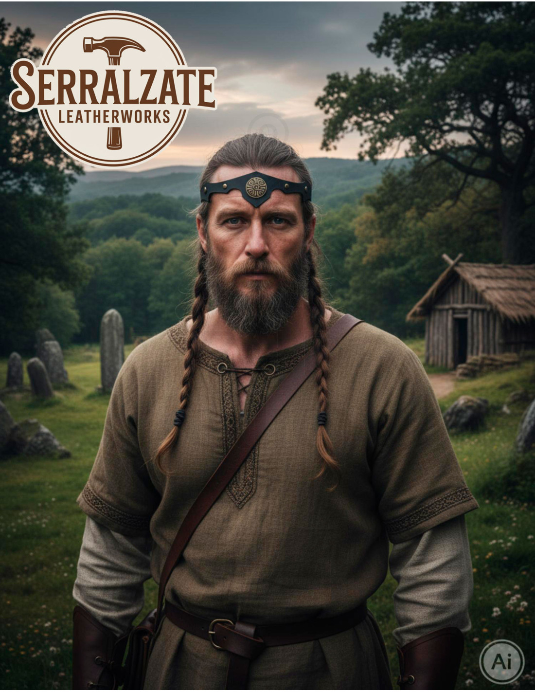 Son design protège le front avec cette élégance délicate apportée par l'ornement métallique avec motifs celtiques et rivets, mettant en valeur des détails qui reflètent l'histoire et la tradition, idéal pour les personnes qui aiment les accessoires avec du caractère et de l'esprit. L'ajustement à l'arrière, grâce à un cordon en cuir, assure un confort parfait et un ajustement personnalisé, facilitant son port en différentes occasions.