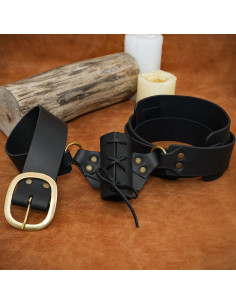 Baldric médiéval en cuir avec ceinture, pour épées.