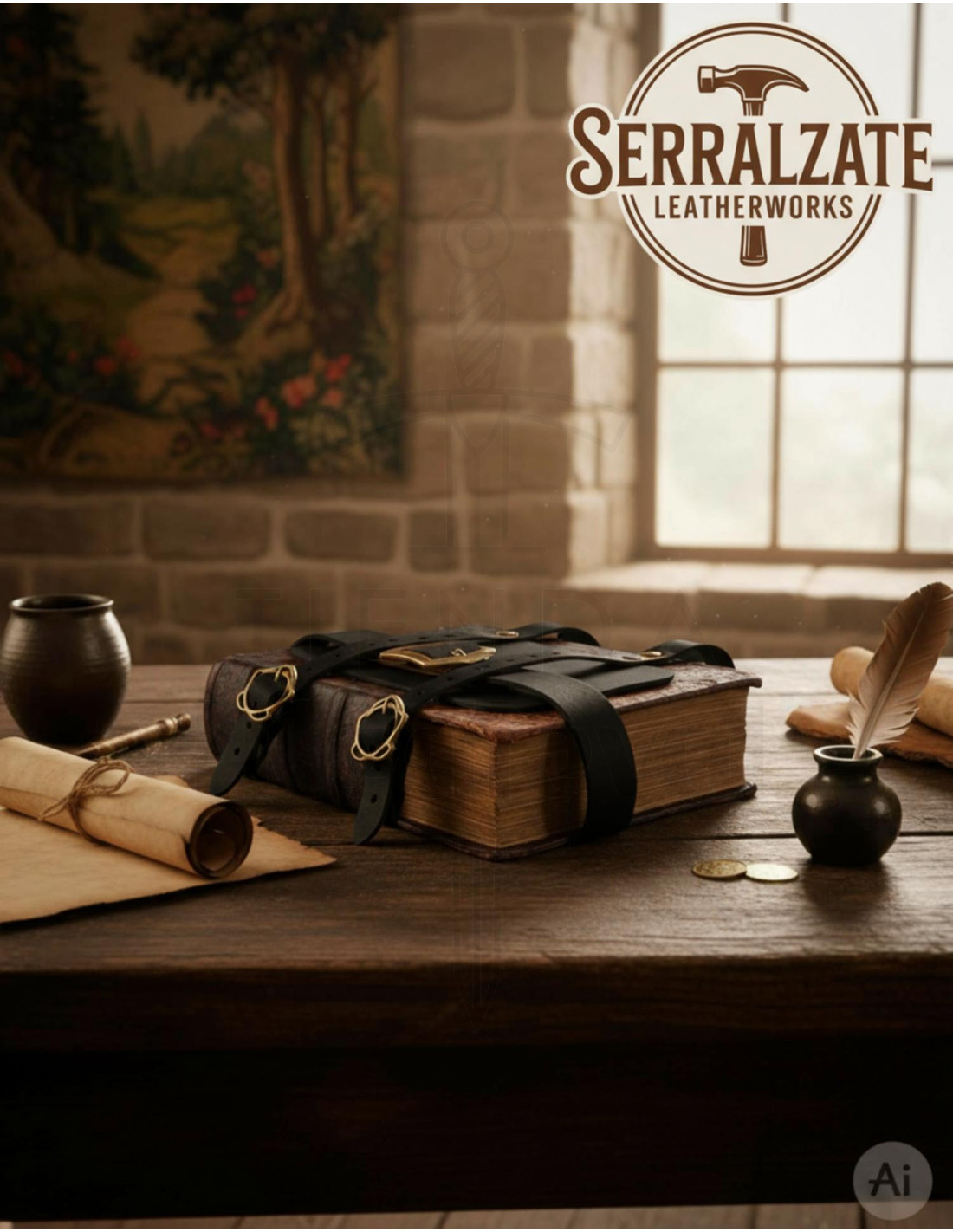 Vous cherchez un accessoire alliant fonctionnalité et style pour vos aventures magiques ou reconstitutions médiévales ? Ce porte-livres en cuir noir vous offre la solution parfaite pour afficher une touche authentique et pratique.