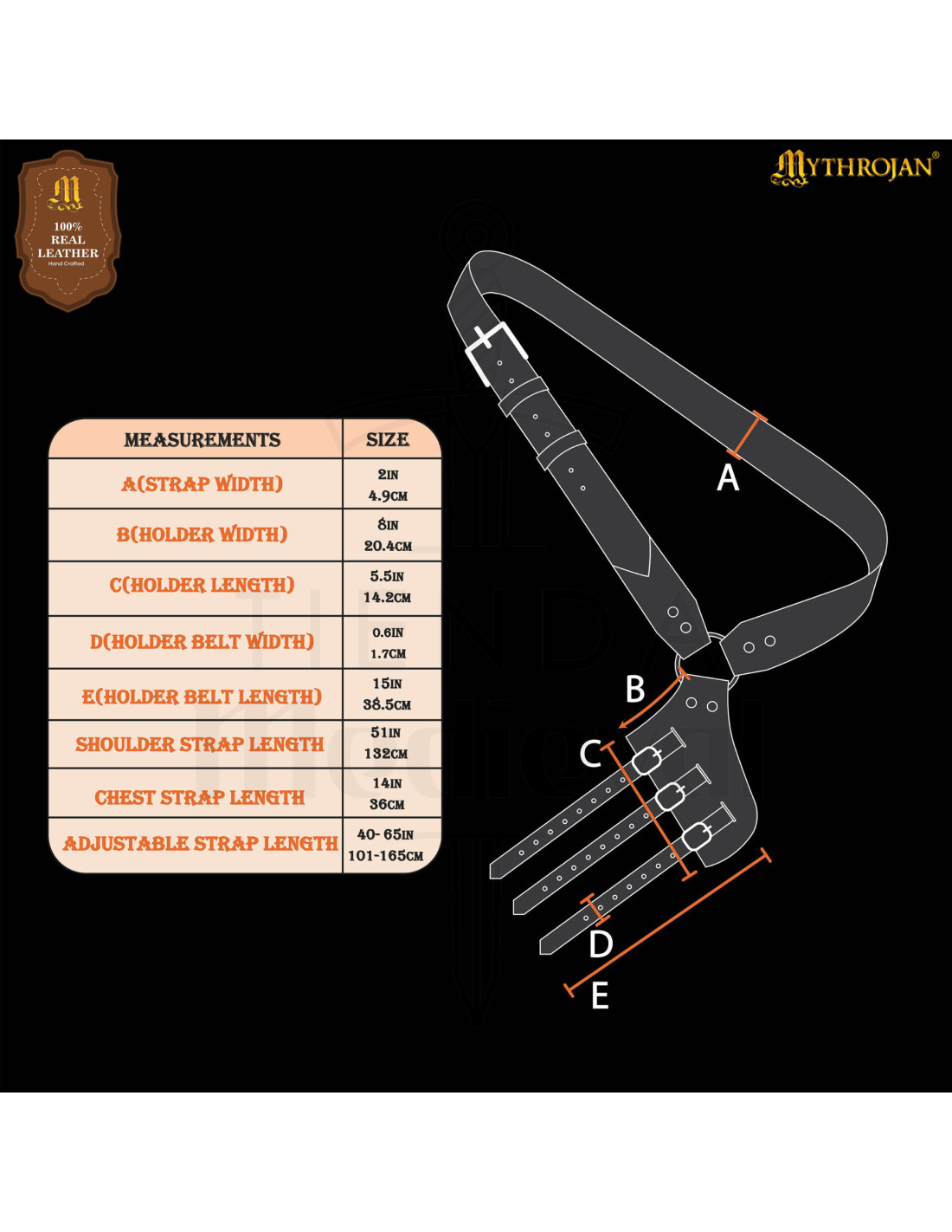 Pensé spécifiquement pour la main droite, ce harnais conserve une silhouette traditionnelle, idéal pour ceux qui recherchent à la fois authenticité et fonctionnalité. Sa construction permet de loger en toute sécurité des épées longues, des épées de bras et des répliques de LARP, s'adaptant à différentes longueurs sans complexité.