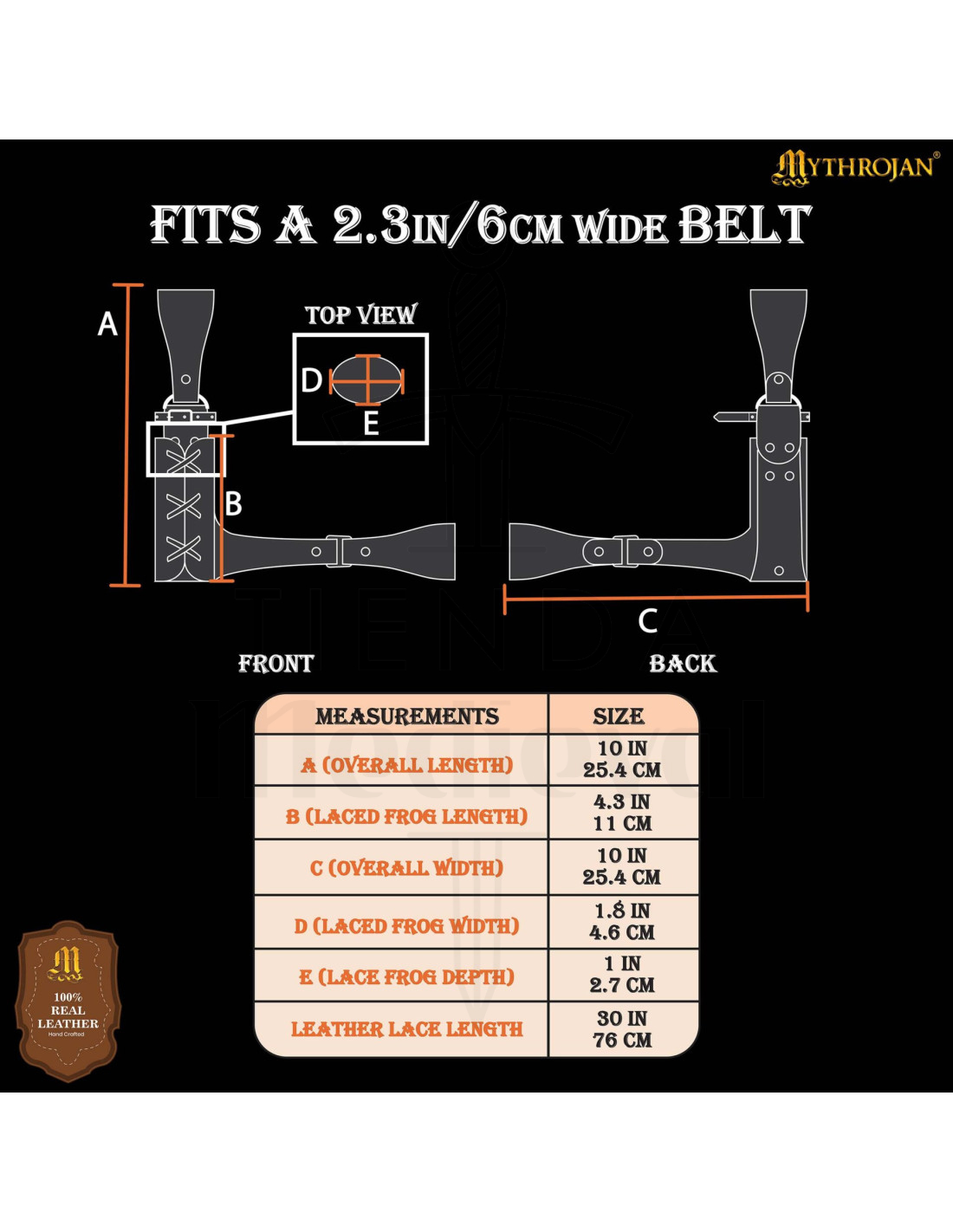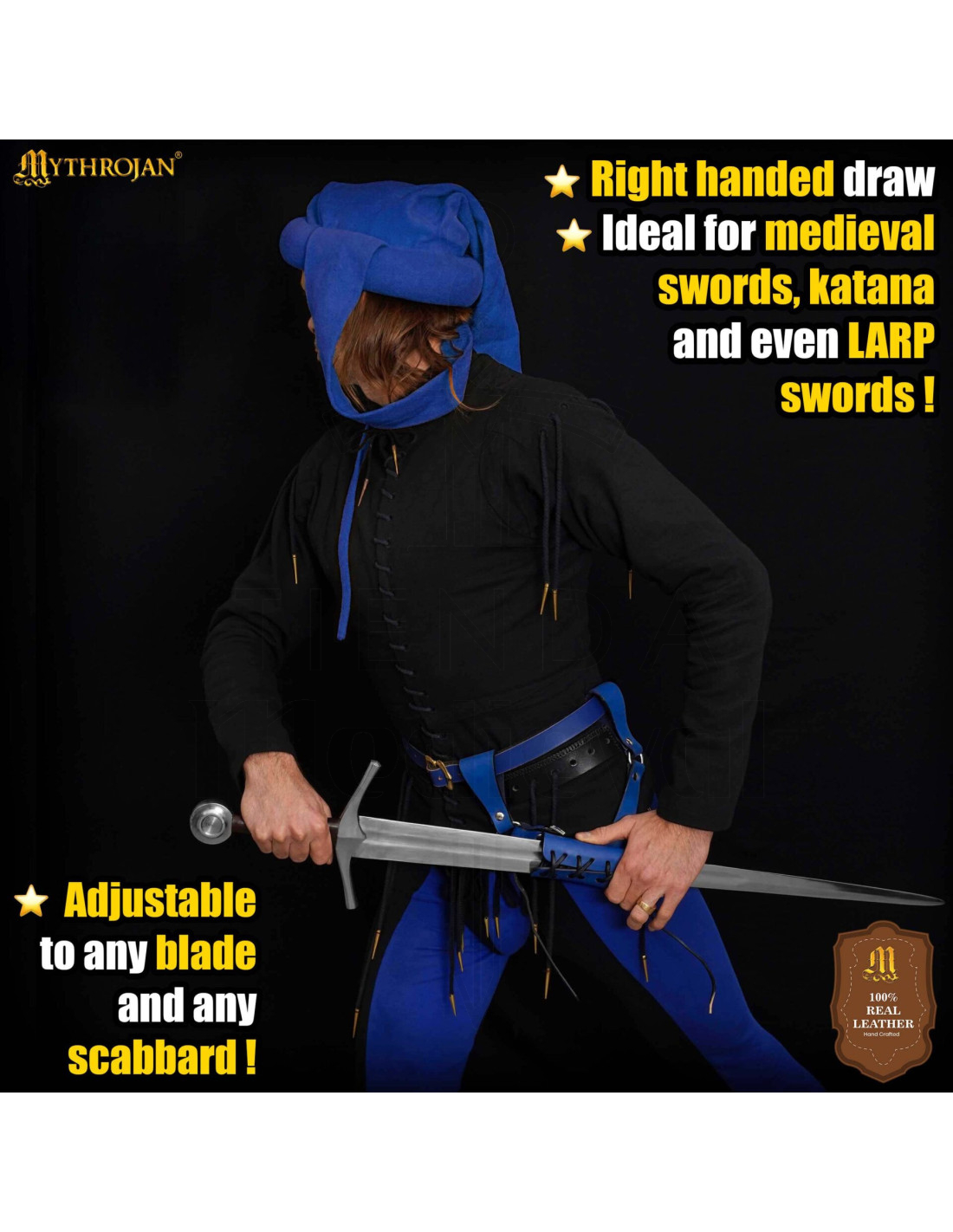 Ce accessoire relie à la tradition médiévale de transporter l'épée à la hanche, apportant authenticité dans les reconstitutions et conventions, et praticité dans les combats scénarisés. Chaque pièce, par son caractère artisanal, présente de légères variations de ton et de texture, ce qui en fait une pièce exclusive.