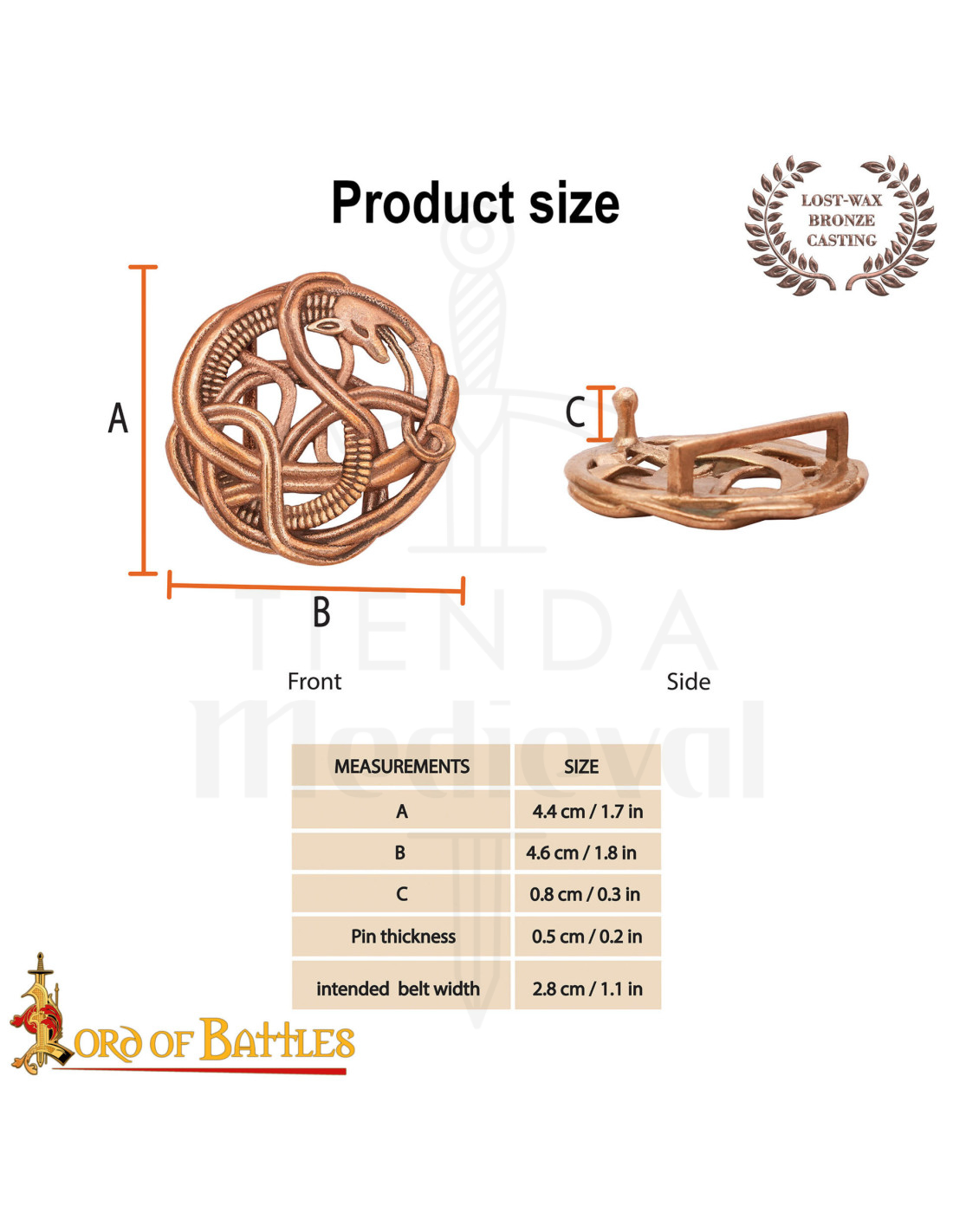 Si vous souhaitez acheter la Boucle viking en forme de serpent pour ceinture, en bronze vieilli, vous trouverez dans cette pièce une union d'esthétique, de durabilité et de signification, prête à accompagner votre style ou votre prochaine reconstitution.