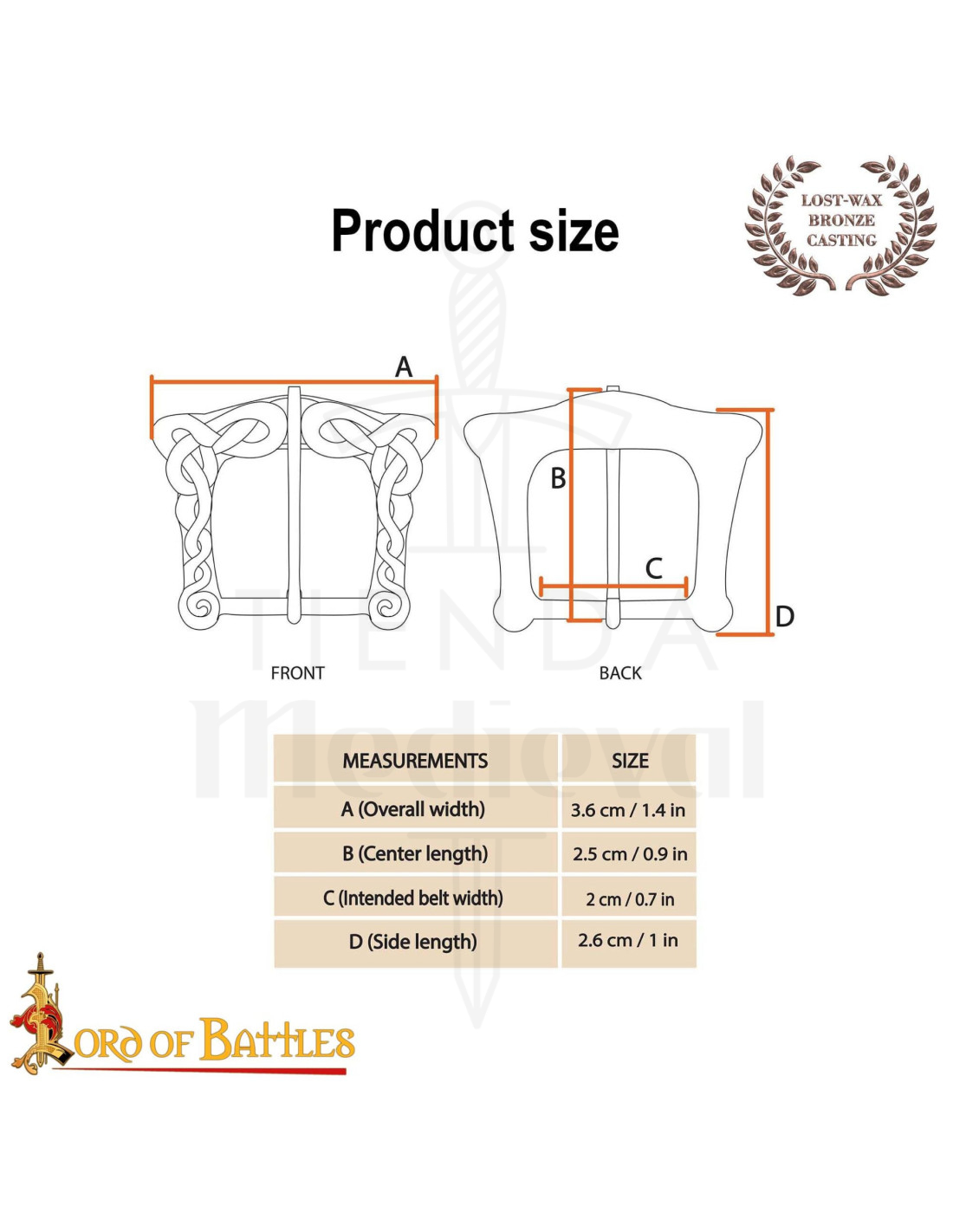 Cette boucle offre cet effet immédiat : une présence décorative et une texture solide qui transmettent l'authenticité, grâce au bronze travaillé à la main. La finition vieillie met en valeur la texture des entrelacs celtiques, apportant du caractère à des ceintures et des courroies discrètes, sans perdre la fonctionnalité nécessaire pour un usage quotidien. La barre mobile à l'arrière fixe la courroie fermement, facilitant un ajustement rapide et fiable pour des projets en cuir et des accessoires historiques.