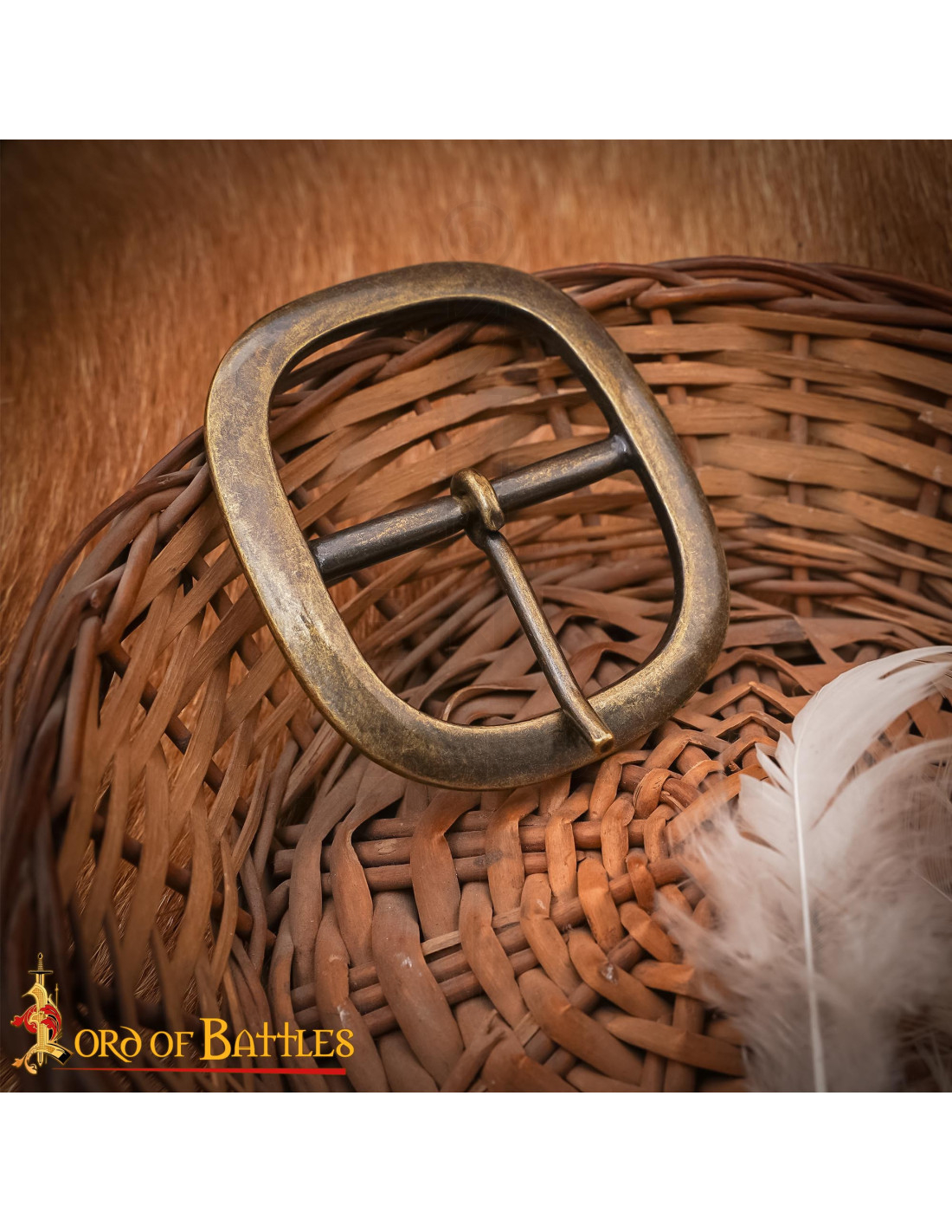 Avec une finition dorée vieillie qui simule des années d'utilisation noble, cette pièce transforme n'importe quelle sangle en un détail marquant, idéale si vous souhaitez vous démarquer lors d'événements, de reconstitutions ou au quotidien. La forme ovale avec des bords arrondis offre une esthétique robuste et douce à la fois, apportant de la personnalité sans compromettre le confort.