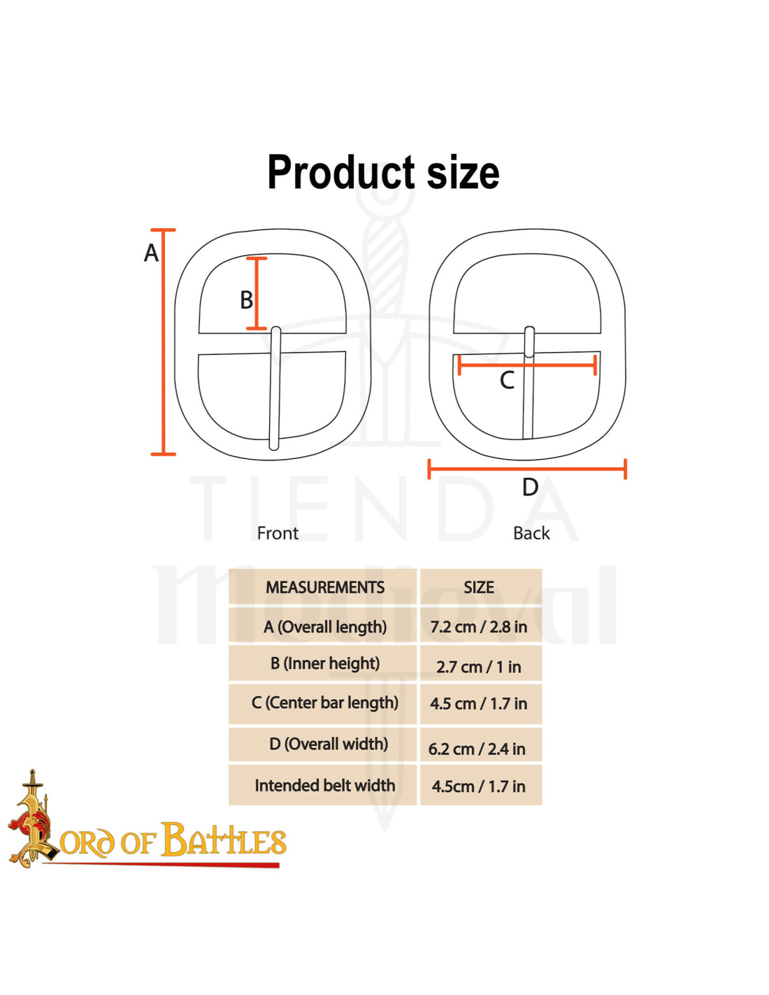 L'aspect rugueux et mat, avec des textures imitant l'usure historique, ajoute une authenticité visuelle, réalisant cet équilibre entre élégance et force médiévale qui fonctionne dans des costumes d'époque, des produits d'artisanat en cuir et des tenues LARP. Si vous cherchez à acheter une boucle médiévale ovale en laiton vieilli, ici vous avez une option qui allie esthétique traditionnelle et usage quotidien.