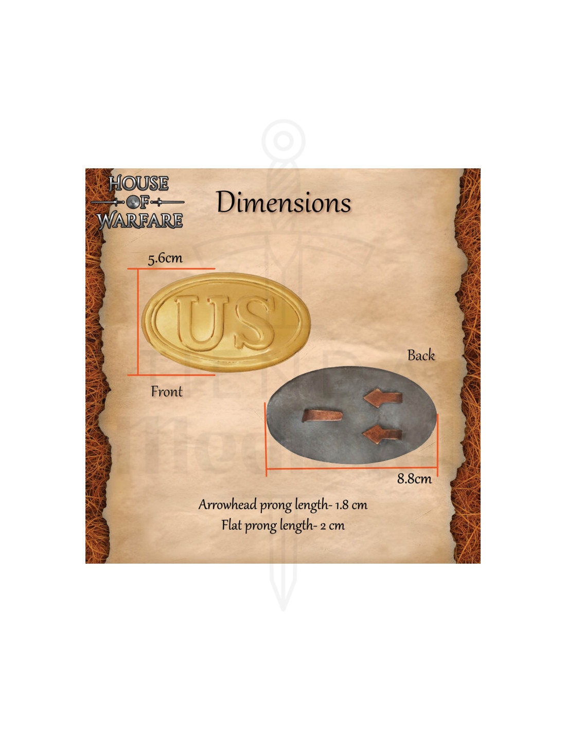 Conçu pour ceux qui apprécient le passé, la boucle de la guerre civile des États-Unis de l'Union offre présence et élégance grâce à son fini doré brillant et sa forme ovale, rehaussant n'importe quelle tenue d'une touche de distinction. Le relief central de deux lettres sert de point focal, transformant la plaque en un fil conducteur pour raconter des anecdotes et des souvenirs historiques lorsque vous la portez.