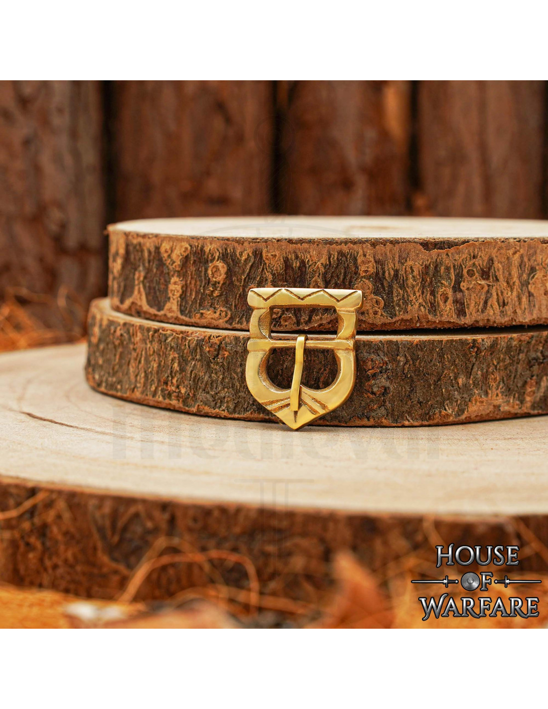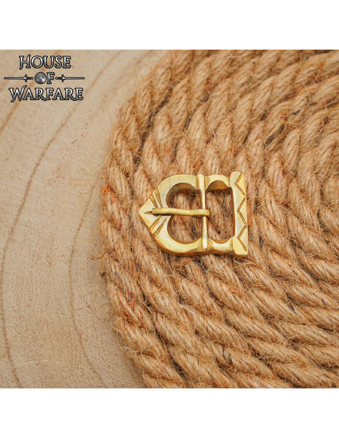 Inspirée des designs des périodes viking et normande du IXe au XIIIe siècle, elle présente une gravure géométrique en zig-zag qui ajoute de l'authenticité sans extravagance, idéale pour ceux qui recherchent des reconstitutions fidèles et des finitions avec caractère. Sa teinte dorée chaude met en valeur le cuir et les tissus, apportant cet aspect vécu qui distingue un ensemble authentique des autres.