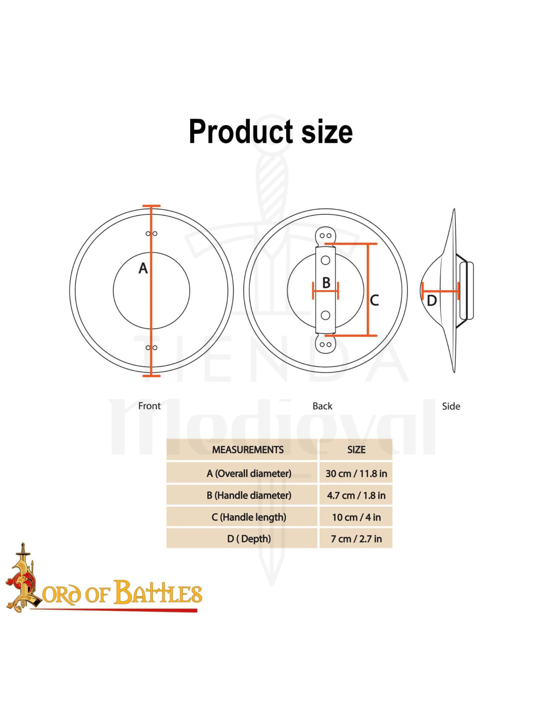 Idéal pour le théâtre, la reconstitution historique, les entraînements HEMA, les événements LARP ou comme pièce décorative dans des expositions et collections privées. Si vous effectuez des recherches orientées vers l'achat, des termes comme acheter Broquel médiéval en acier noirci, poignée en bois ou vente Broquel médiéval en acier noirci, poignée en bois placent ce modèle parmi les options prêtes à acquérir.