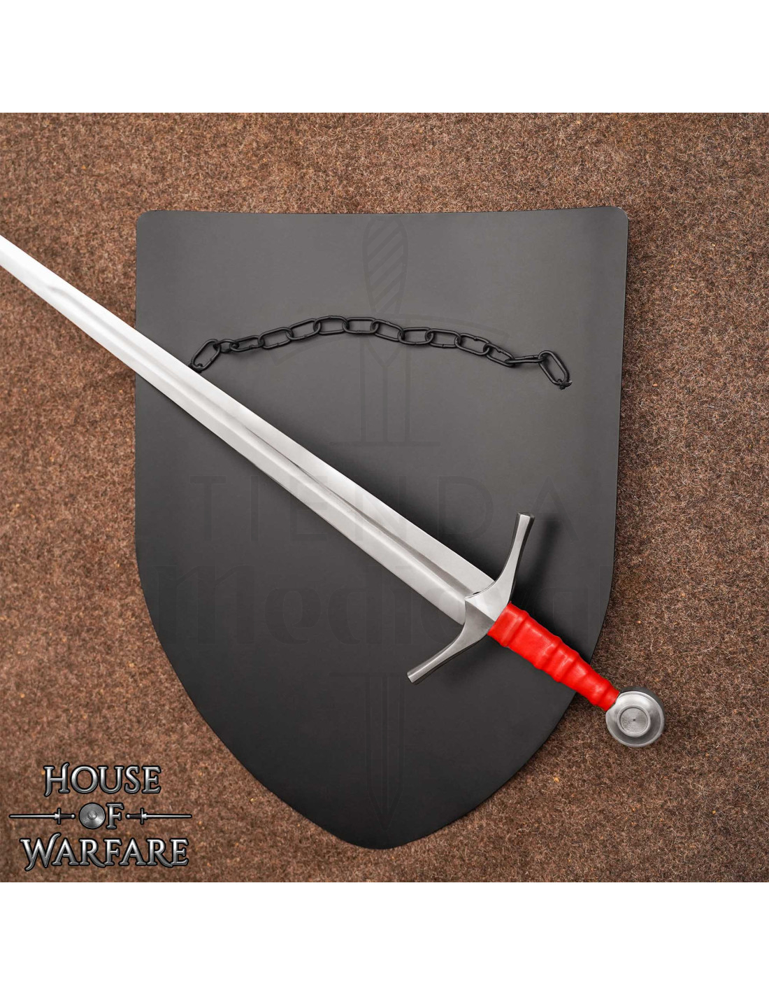 Le Bouclier médiéval en acier lisse avec chaîne, couleur noire offre une construction en acier résistant qui supporte le rythme des pratiques, des batailles d'interprétation et des mises en scène, sans sacrifier l'esthétique. Son finition mate facilite la personnalisation, vous pourrez donc peindre des blasons, des écus de famille, des symboles de votre groupe ou un design fantastique avec des résultats professionnels.