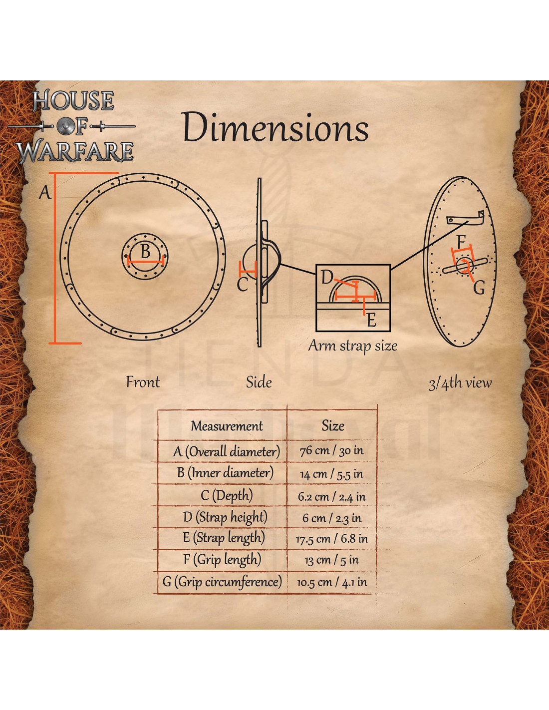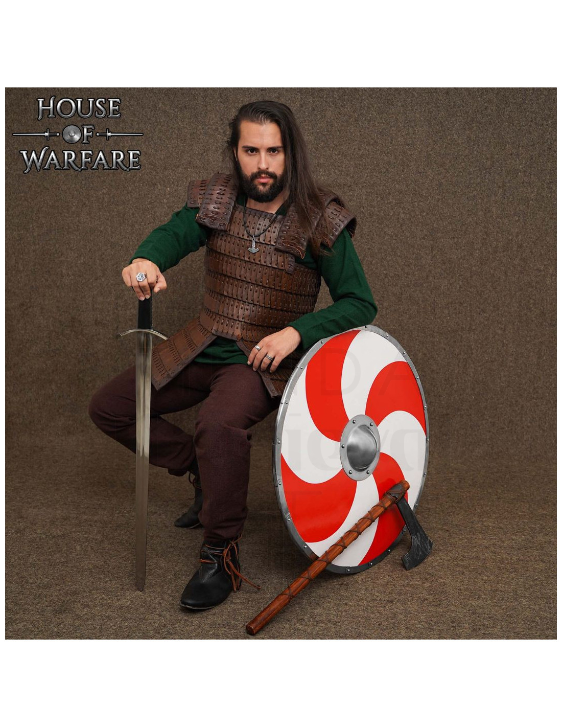 Il comprend des détails qui font la différence, du umbo métallique qui protège la main, aux rivets qui soulignent son caractère artisanal, tout pensé pour offrir une expérience visuelle et pratique supérieure.