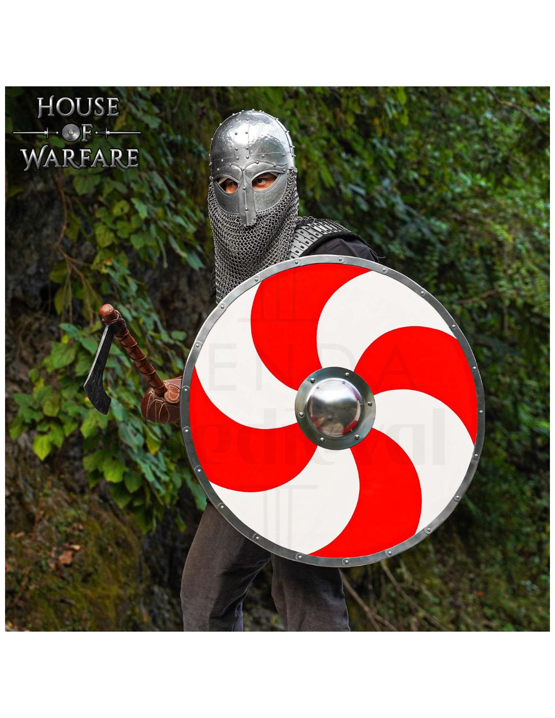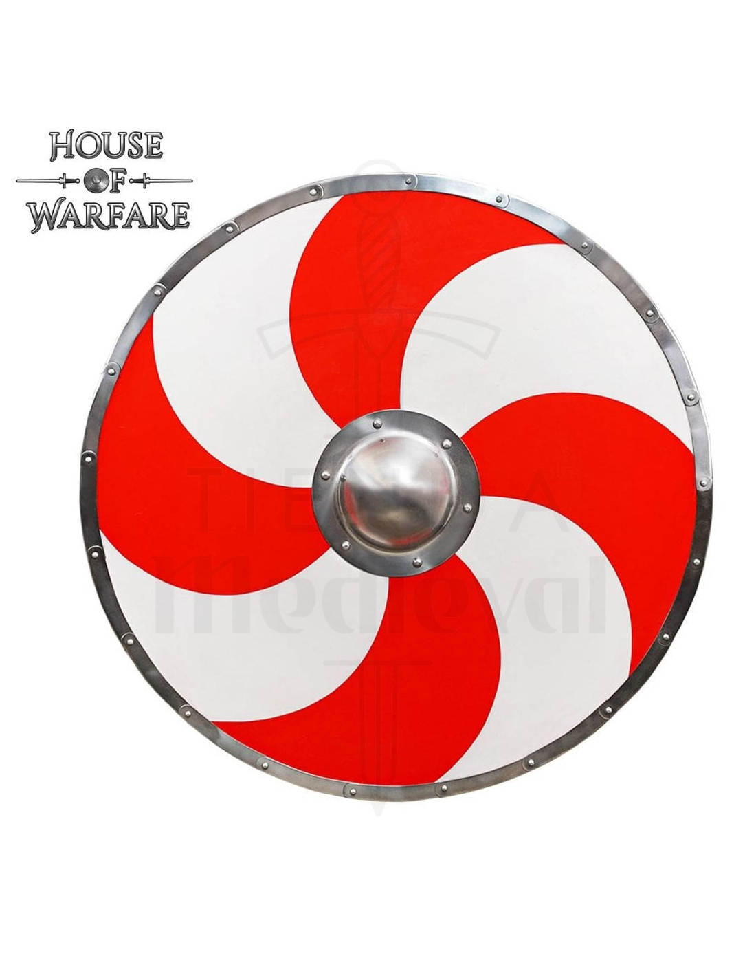 Son design en spirale divisé en quatre segments alternés crée un impact visuel immédiat, parfait pour ceux qui recherchent une pièce qui se démarque lors de reconstitutions, de cosplay et de décoration avec caractère. Le contraste rouge-blanc fait de cette pièce un point focal décoratif qui parle d'audace sans avoir besoin de mots.