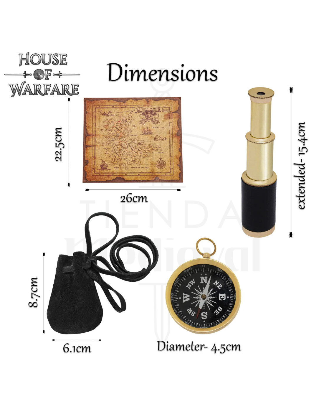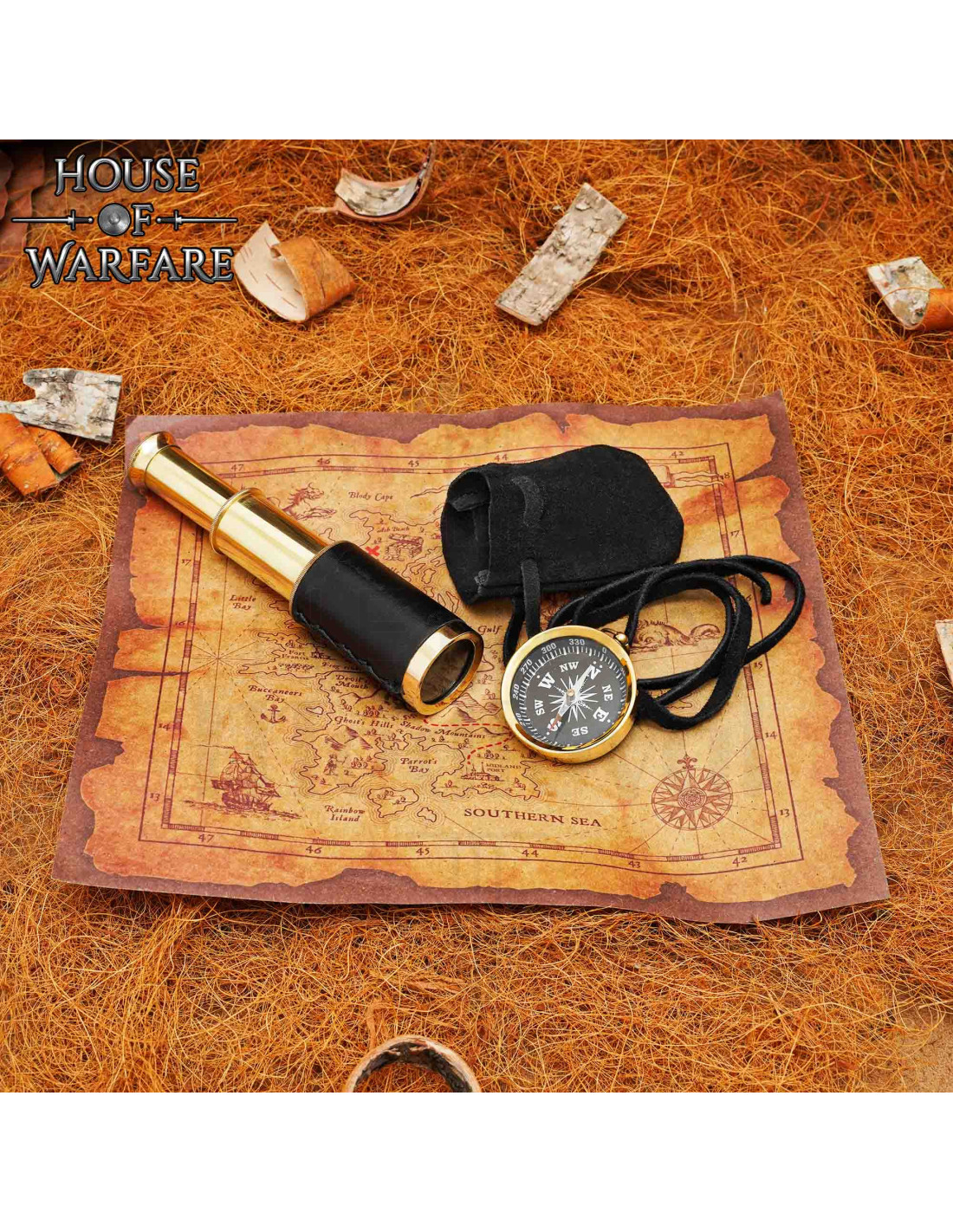 Parfait pour des aventures inspirées par les marins, pirates et expéditions classiques, ce set est idéal si vous souhaitez acheter le Set chasse au trésor : boussole, télescope et carte pour LARP, pour le cosplay ou comme pièce de collection.