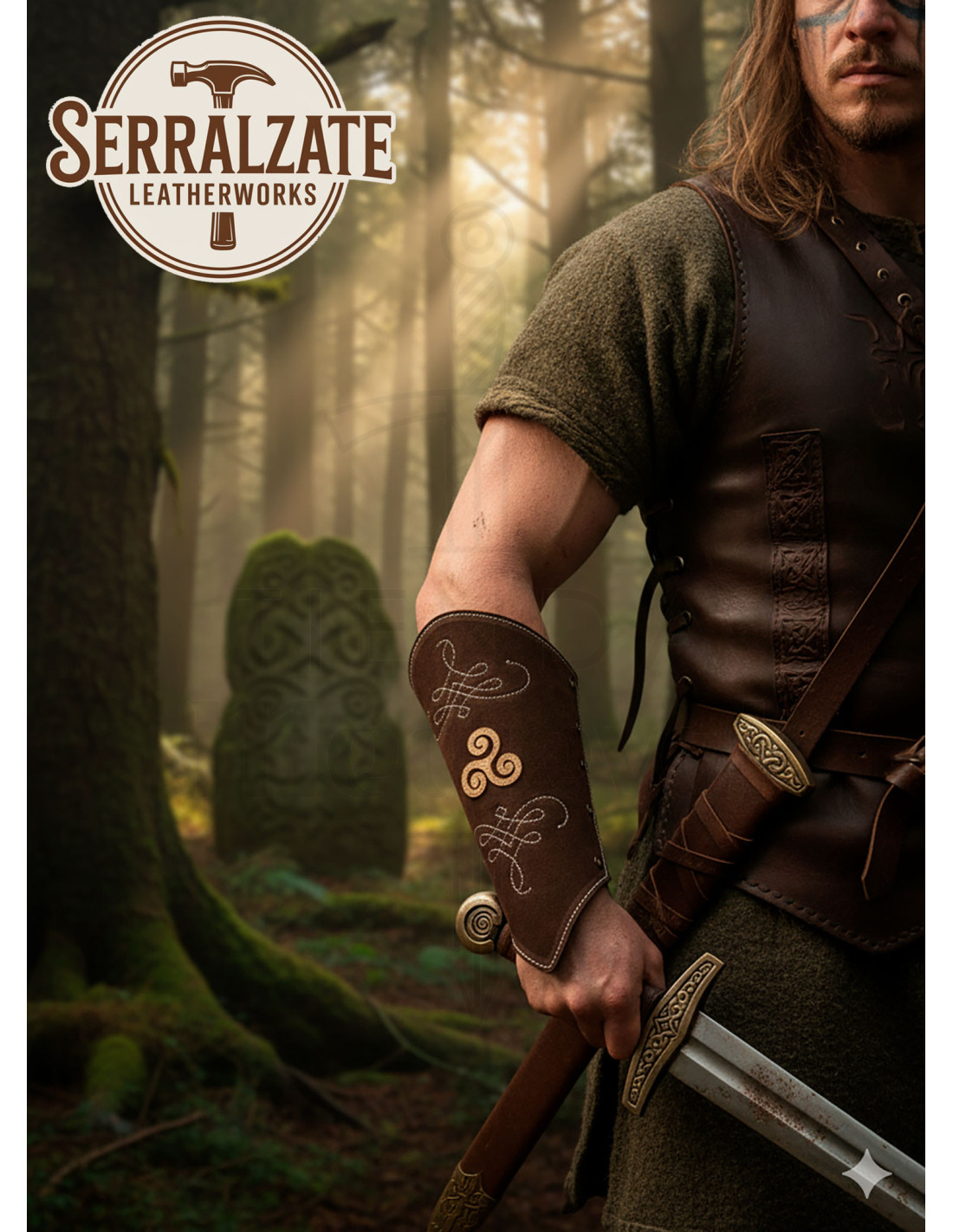 Le design unique des Nyara présente une extension à l'arrière de la main, ce qui leur confère non seulement une touche distinctive, mais aussi une protection et une allure sophistiquée. La finition soignée et les décorations fines enrichissent leur apparence, en faisant un accessoire visuellement attrayant. L’un des éléments les plus remarquables est le triskele artistiquement conçu, soigneusement cousu au centre des bracelets, symbolisant le mouvement et la croissance, et apportant un caractère particulier à chaque pièce.