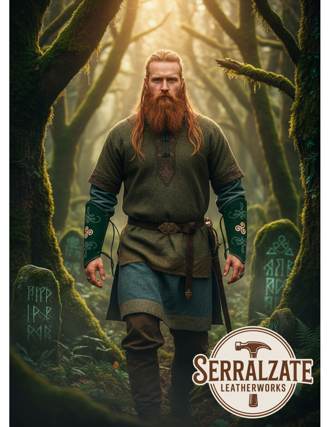 Nous vous présentons les bracelets de gardien en cuir nubuck vert, modèle Nyara, une pièce exceptionnelle de la marque espagnole Serralzate LeatherWorks, qui se distingue par son attention méticuleuse aux détails. Ces bracelets sont fabriqués en nubuck doux, offrant un confort exceptionnel, idéal pour une utilisation prolongée dans diverses activités.