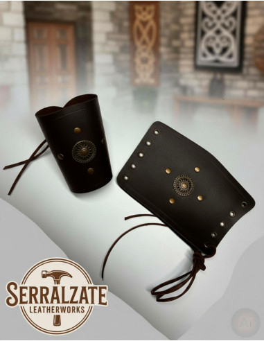 La paire de Bracelets roue celtique, marron, allie une roue celtique en plaqué métal avec du cuir véritable travaillé à la main, offrant un équilibre entre présence visuelle et confort au porter. Chaque détail a été réalisé par des artisans reconnus en Espagne, garantissant une finition soignée qui se perçoit au toucher et à l’œil, sans être encombrante.