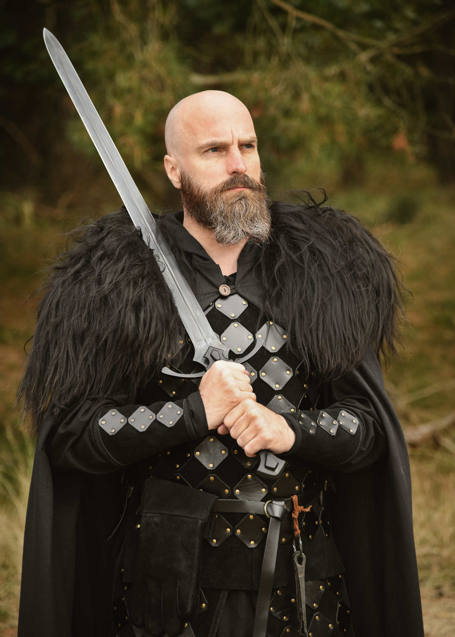 Bracer médiéval en cuir noir avec étui, modèle Geralt