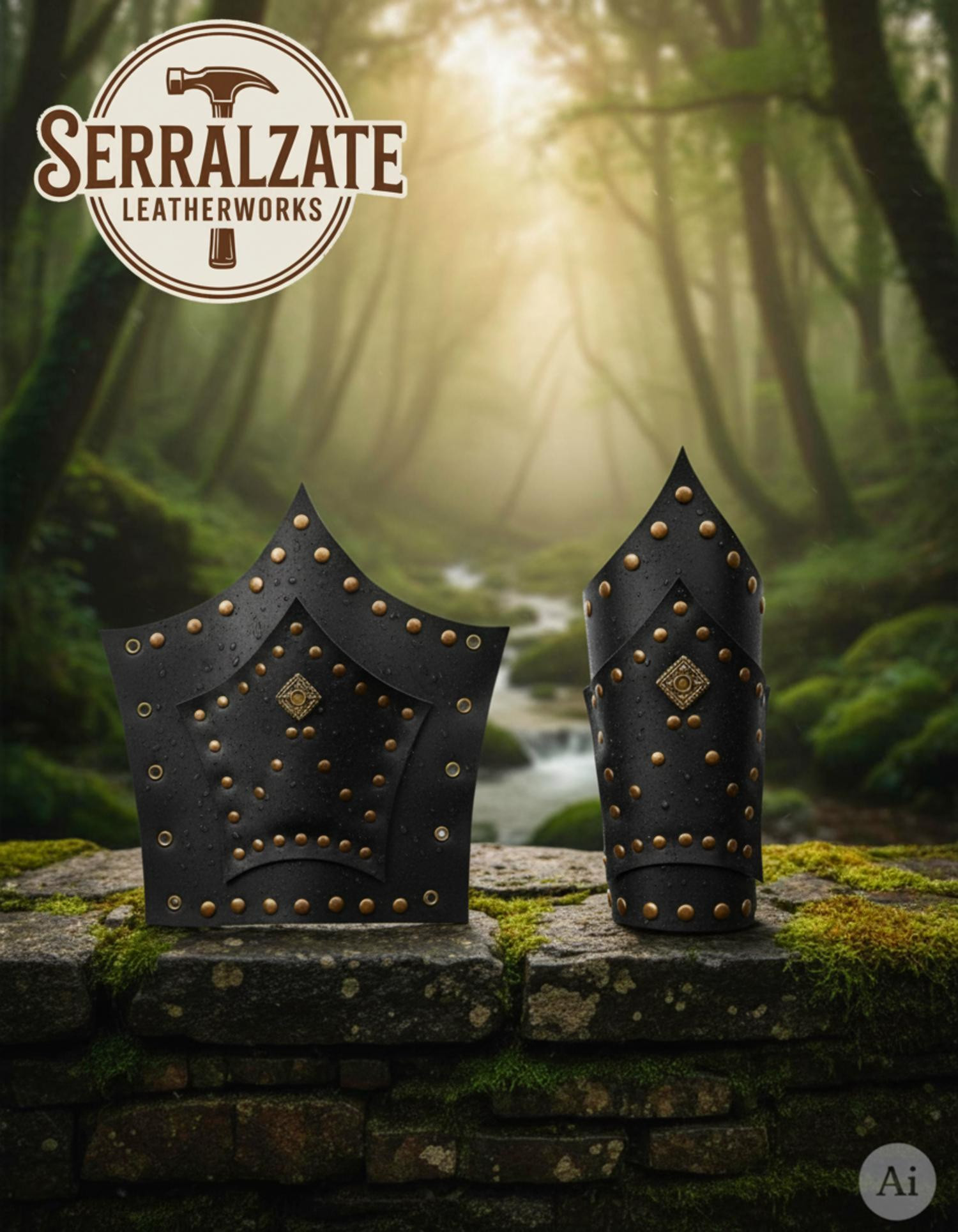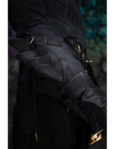 Conçus pour offrir protection et style sans entraver vos actions, les courbes stratégiques suivent la ligne naturelle de l'avant-bras, créant une silhouette dynamique qui accompagne chaque geste. Les rivets en laiton ancien et les plaques en forme de losange apportent une finition percutante, tout en renforçant les zones les plus exposées.