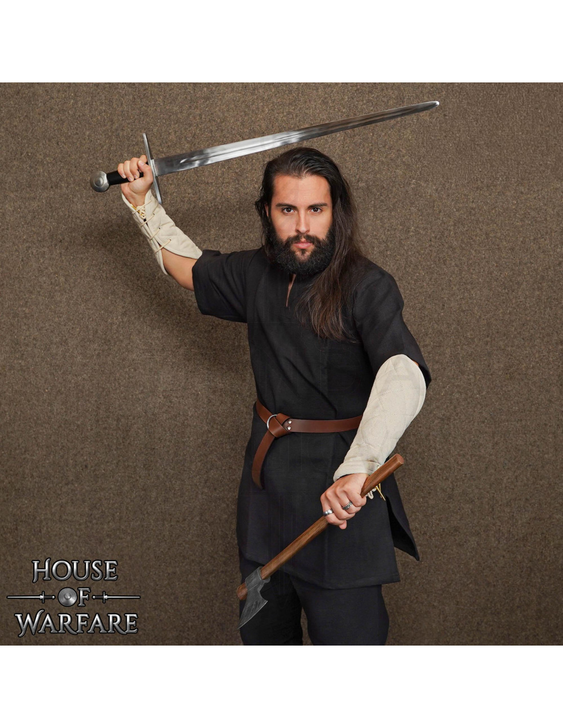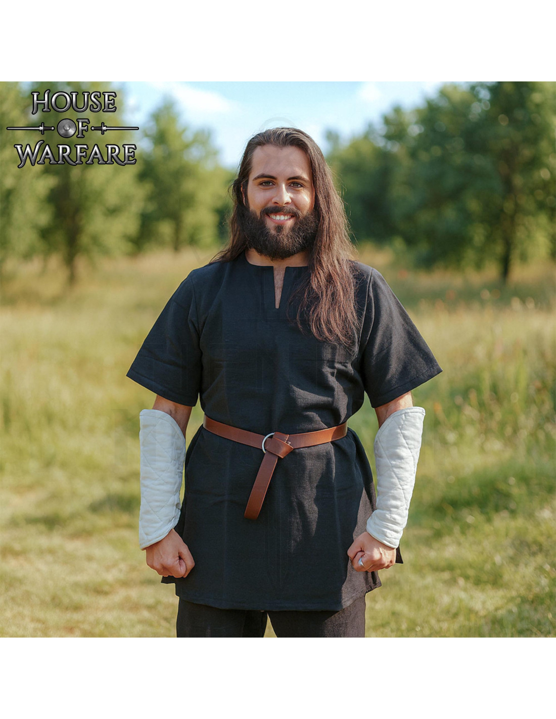 Chaque paire est confectionnée avec des coutures visibles et un savoir-faire soigné, garantissant un aspect travaillé et une résistance pensée pour un usage fréquent en SCA, reconstitution historique et théâtre de combat. De plus, la finition texturée du tissu et la teinte crème s'intègrent avec une large gamme de tenues historiques et de fantasy.