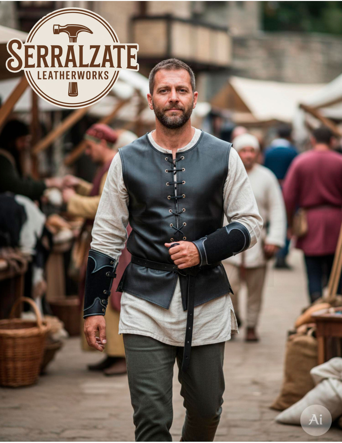 Que vous apporte-t-il au quotidien ou lors de vos reconstitutions? La construction soignée améliore l'ergonomie, évitant les frottements et répartissant la pression sur l'avant-bras, tandis que la texture du daim facilite la prise et réduit les glissements pendant le combat ou l'utilisation d'outils. La finition artisanale garantit la durabilité et une patine qui raconte des histoires au fil du temps.