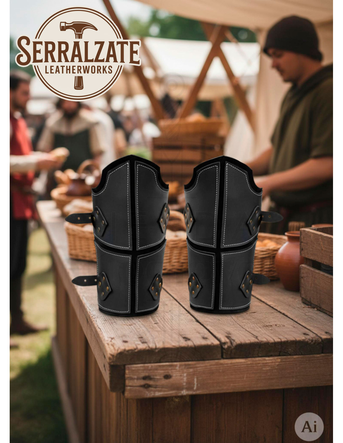 Fabriqués en cuir noir véritable, ils présentent une finition lisse et un travail artisanal qui parle de lui-même, avec des coutures blanches dessinant un motif soigné et renforçant les zones les plus exposées, offrant une sensation de résistance et de caractère dès le premier geste. Leur construction en plusieurs pièces s'adapte à la courbure de l'avant-bras, garantissant un ajustement ferme sans limiter les mouvements, idéal pour des reconstitutions historiques, des cosplays ou des événements thématiques où la mobilité et l'apparence comptent également.