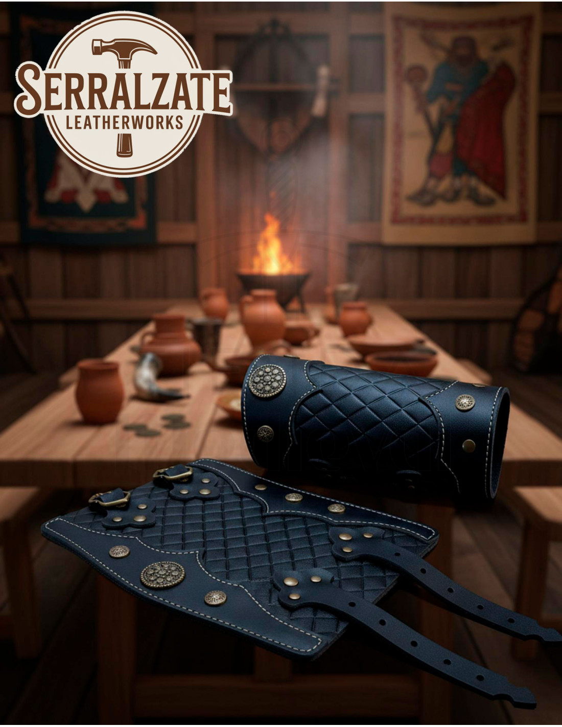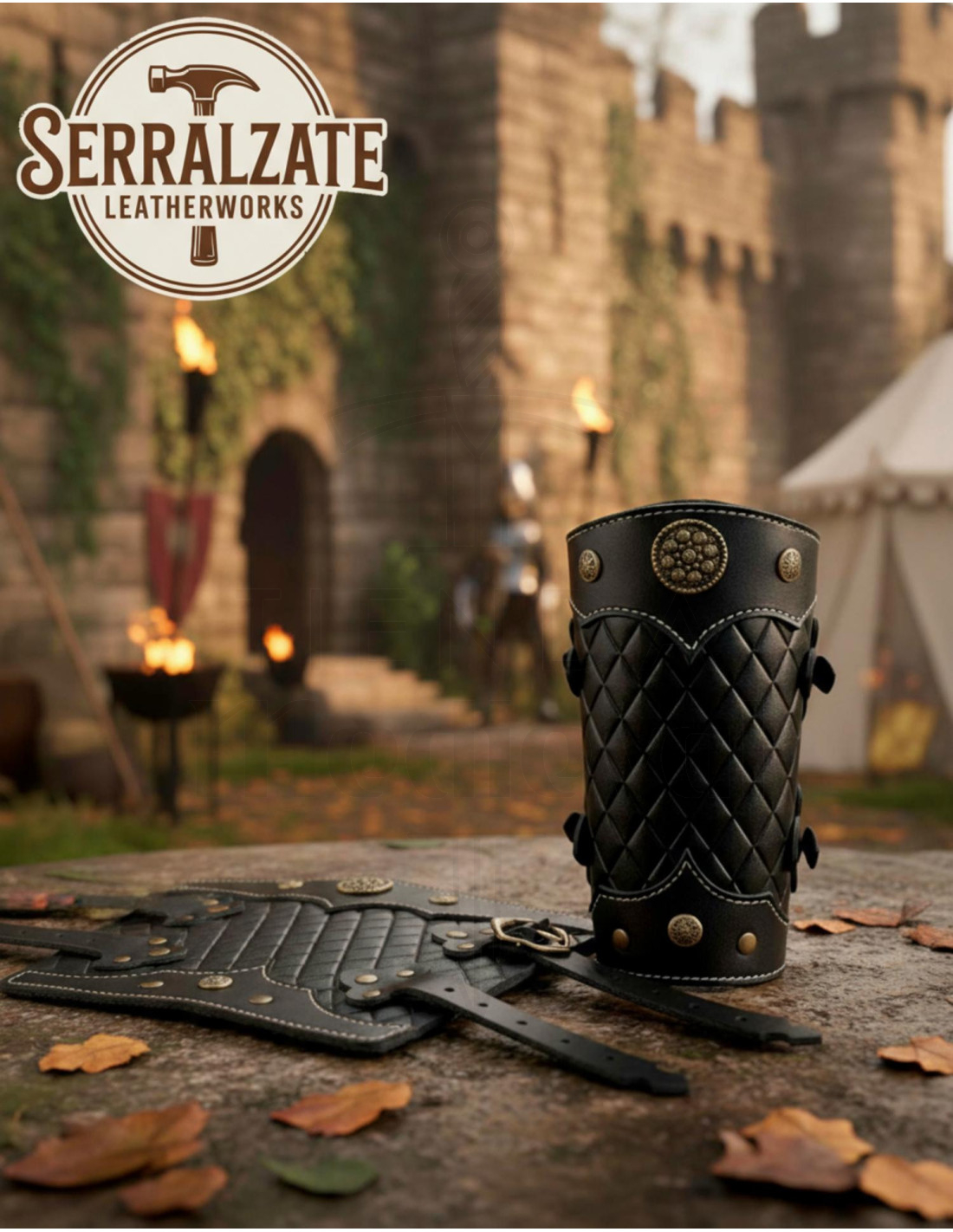 Fabriqués en Espagne, ils reflètent un métier traditionnel qui se note dans les finitions et dans l'ajustement, pour que les bracelets se mettent en place facilement et restent fermes pendant les mouvements, les combats chorégraphiés ou les défilés. Leur design exploite la surface pour protéger et embellir l'avant-bras, sans limiter la liberté d'action ni ajouter de poids inutile.