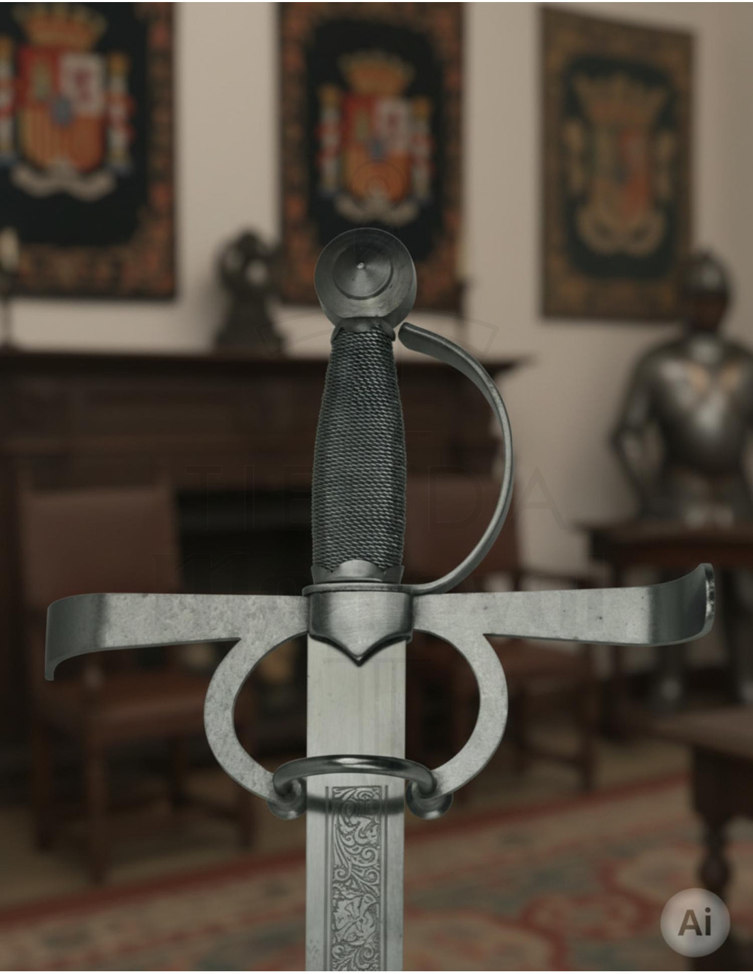 Découvrez l'épée Francisco de Pizarro, une pièce unique au design original et authentique. Cette épée a une lame en acier vieilli gravé et une poignée dans une finition rustique, ce qui lui donne un aspect ancien et chargé d'histoire. Fabriquée à Tolède, en Espagne, cette épée est un véritable trésor pour les amoureux de l'histoire et de la culture.