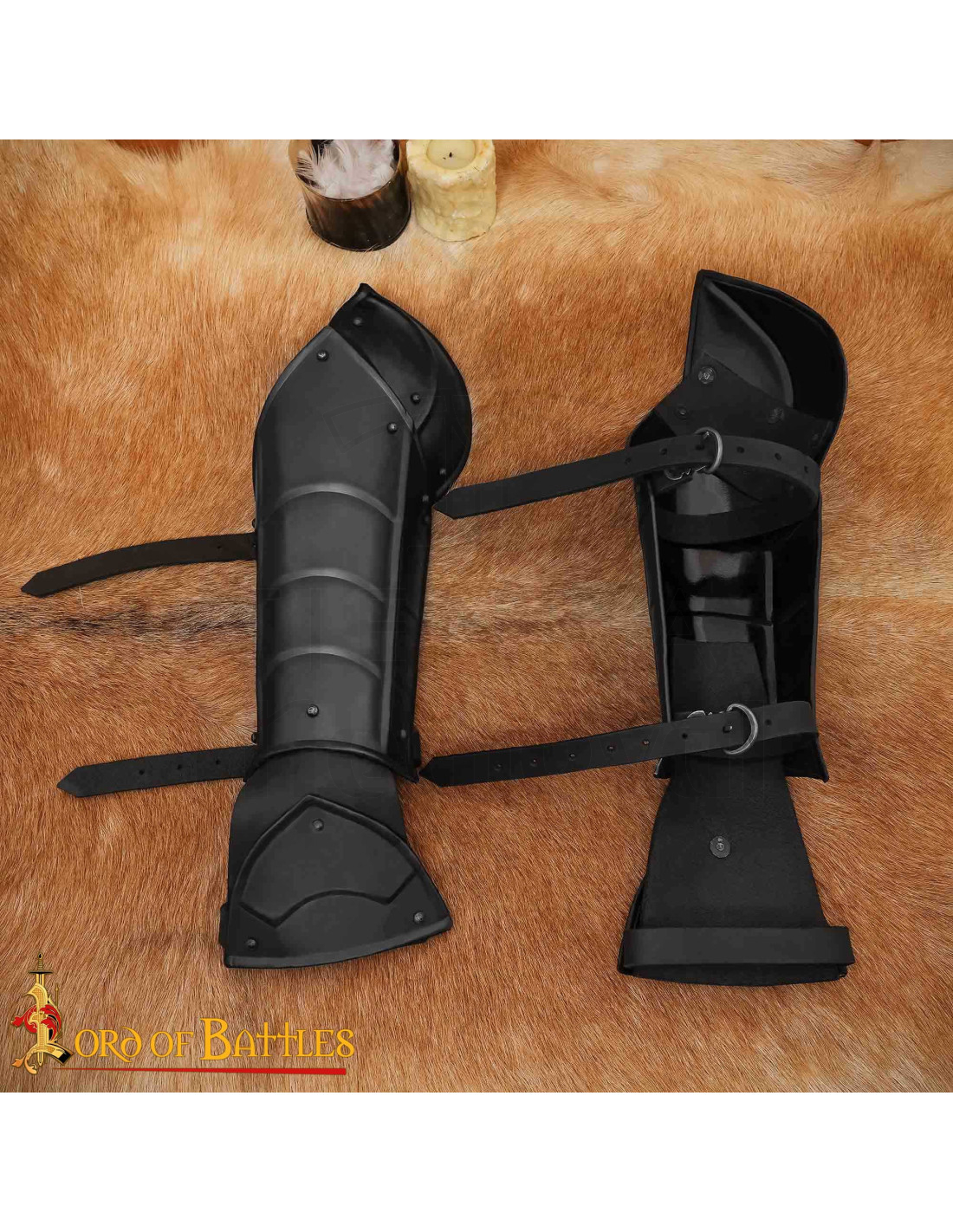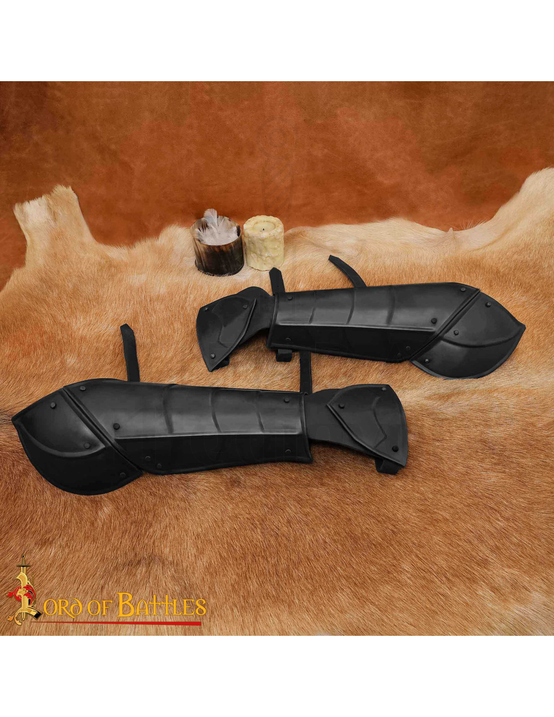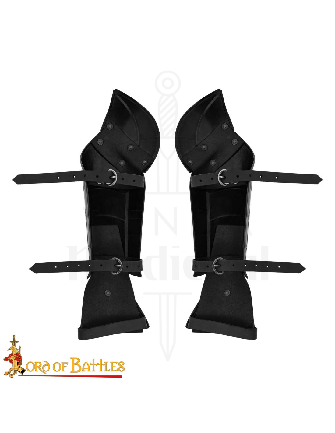 Ces pièces allient un aspect forgé à une sensation de légèreté lors de leur port, grâce à leur construction artisanale en acier doux, garantissant résistance pour les journées les plus exigeantes et confort pendant des heures. La finition en noir mat et les rivets visibles apportent du caractère et de l'authenticité, tandis que les plaques articulées facilitent chaque mouvement de rotation et de blocage, vous permettant d'exécuter des manœuvres fluides sans ressentir l'armure comme un obstacle.