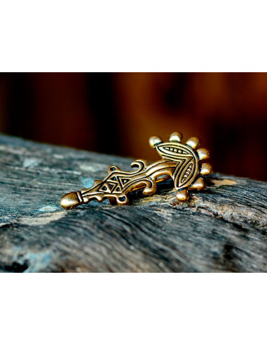 Le matériau utilisé pour cette broche est le bronze, ce qui garantit sa durabilité et sa résistance à l'usure. Le bronze est un métal noble qui empêche l'oxydation et conserve son éclat d'origine dans le temps. De plus, son ton doré ajoutera une touche de sophistication à n'importe quelle tenue.