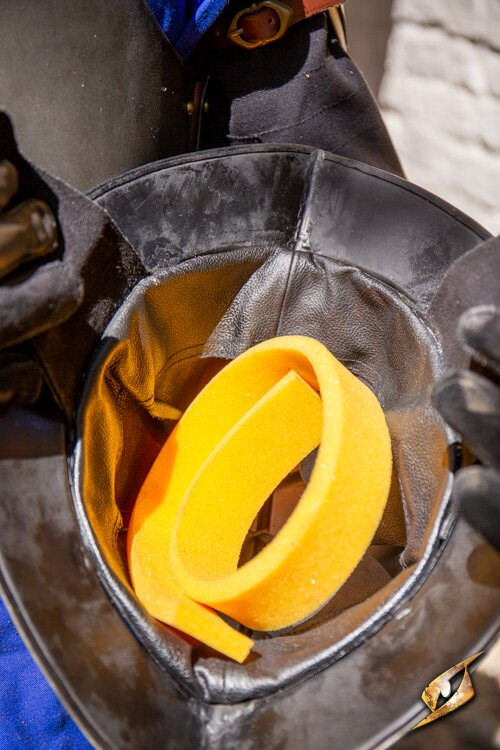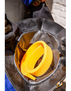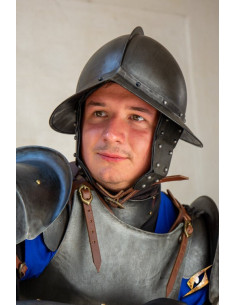 Fixez le Morion en ajustant la sangle en cuir sous le menton, en maintenant le casque bien en place. Construite à partir d'acier de 1 mm d'épaisseur et de lanières de cuir de haute qualité, cette pièce d'armure est conçue pour résister à une utilisation constante dans les GN ou les reconstitutions historiques, tant que des soins appropriés lui sont apportés.