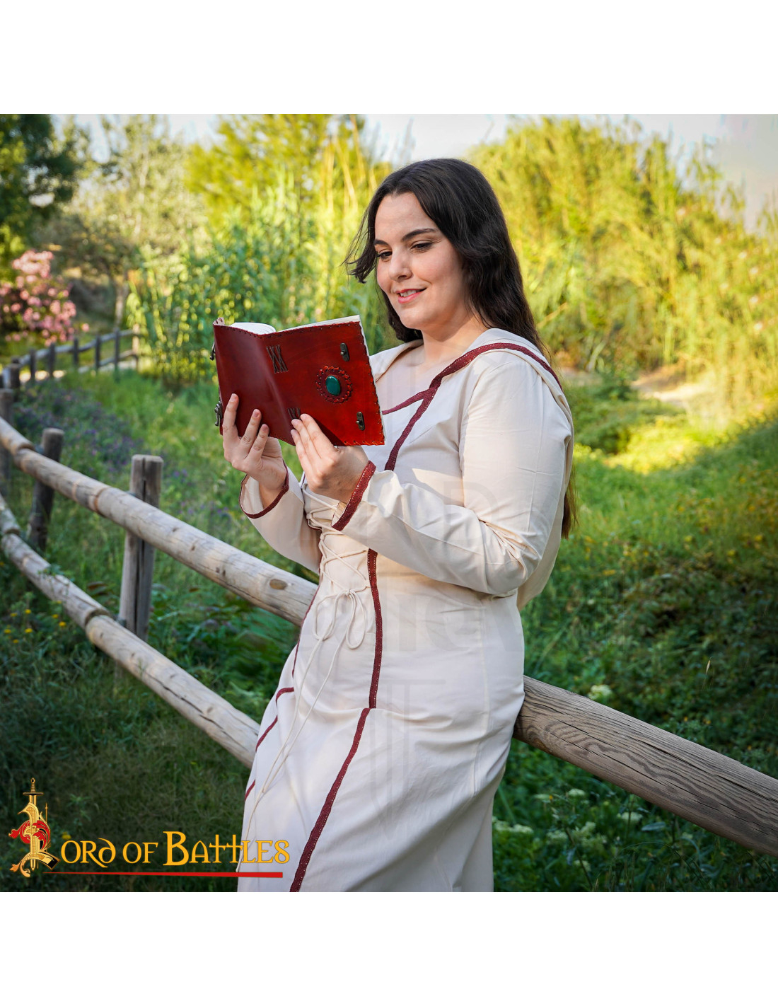 Grâce à son format et à son esthétique, il est idéal pour voyager, comme cahier de terrain lors de foires Renaissance, ou pour créer un carnet personnel d’idées et de projets. C’est un cadeau pensé pour ceux qui apprécient le fait main, l’esthétique historique et la durabilité au quotidien.