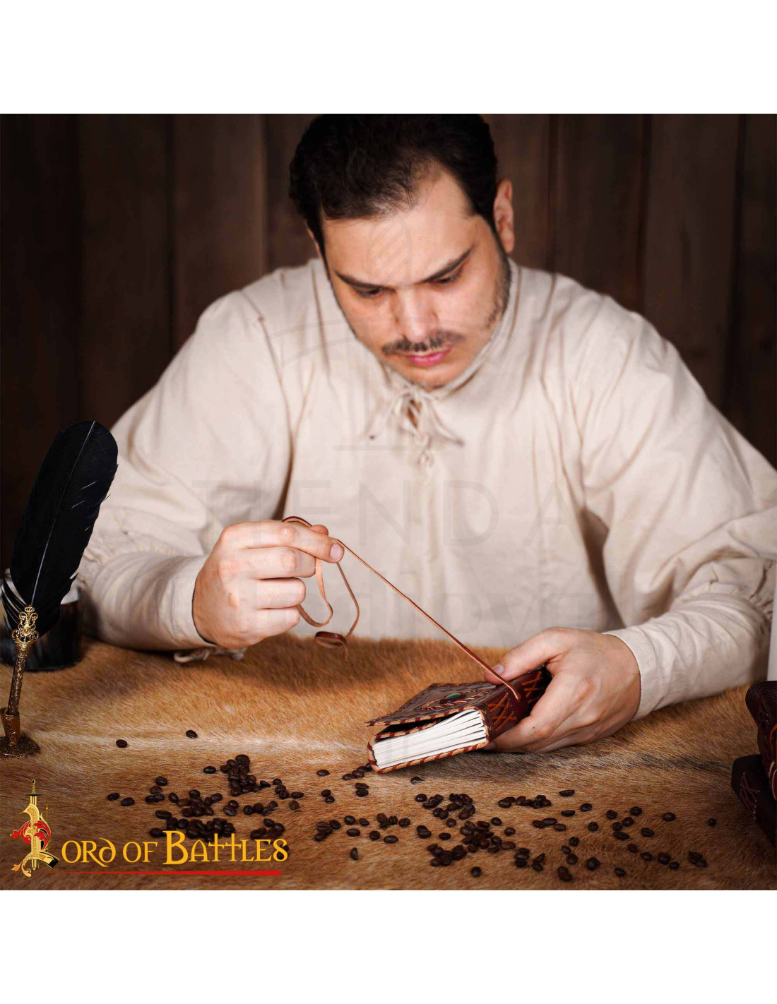 Si vous cherchez à acheter un Journal médiéval à couverture en cuir avec pierre incrustée, vous choisissez une pièce artisanale qui vieillit avec grâce, protège vos idées et se distingue par son design exclusif. Conservez sa beauté en le gardant dans un endroit sec et en évitant une exposition prolongée au soleil, ainsi il accompagnera vos histoires pendant longtemps.