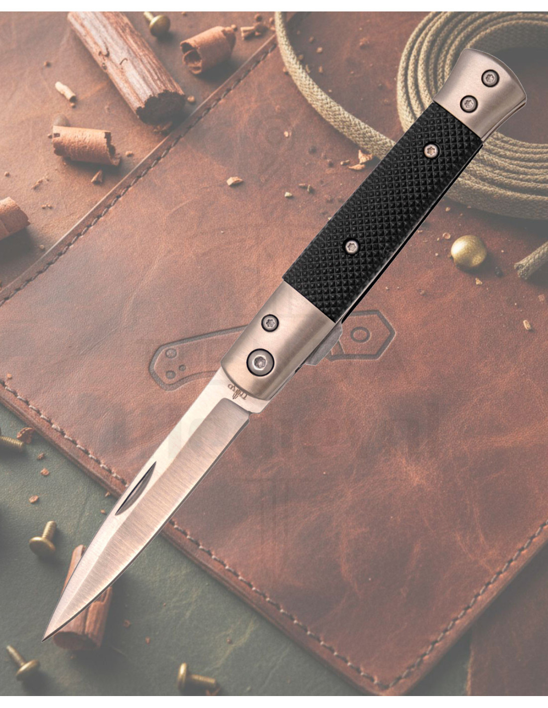 Les extrémités métalliques, fixées par des vis visibles, apportent solidité structurelle et équilibre, tandis que les liners et la lame avec finition satinée facilitent des glissements doux et une apparence professionnelle qui ne passe pas inaperçue.