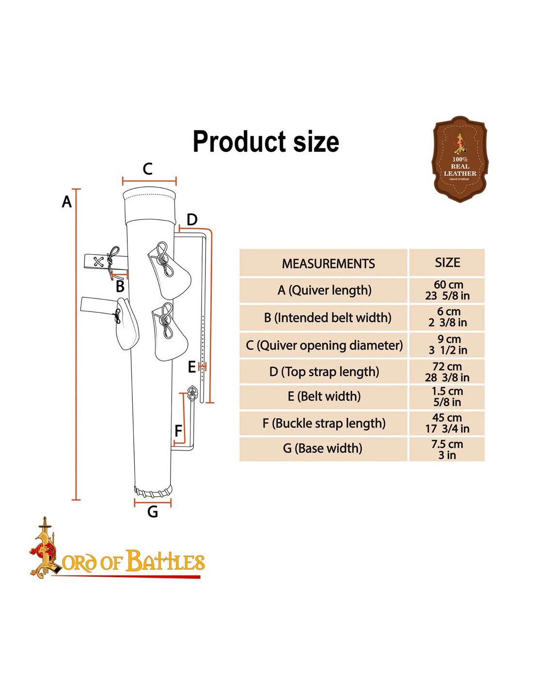 La marque Lord of Battles, reconnue pour sa qualité et son savoir-faire, garantit l'authenticité et l'excellence de ce carquois en cuir marron. Si vous recherchez un accessoire durable, fonctionnel et élégant, c'est sans aucun doute le carquois parfait pour vous.