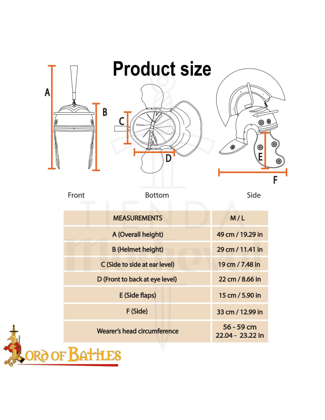 Inspiré par des découvertes historiques du Ier siècle, ce casque combine l'artisanat de la forge manuelle avec un design fonctionnel offrant protection et confort. La plume rouge, faite de cheveux naturels, non seulement augmente sa visibilité en bataille, mais indique également le rang de centurion, le distinguant du reste de la légion. La crête transversale en crin de cheval vibrante ajoute une touche d'authenticité et de style, étant un symbole distinctif de leadership sur le champ de bataille.