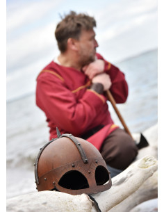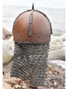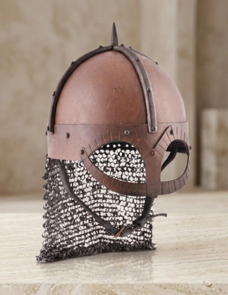 Casque viking Gjermundbu avec cotte de mailles, prêt au combat