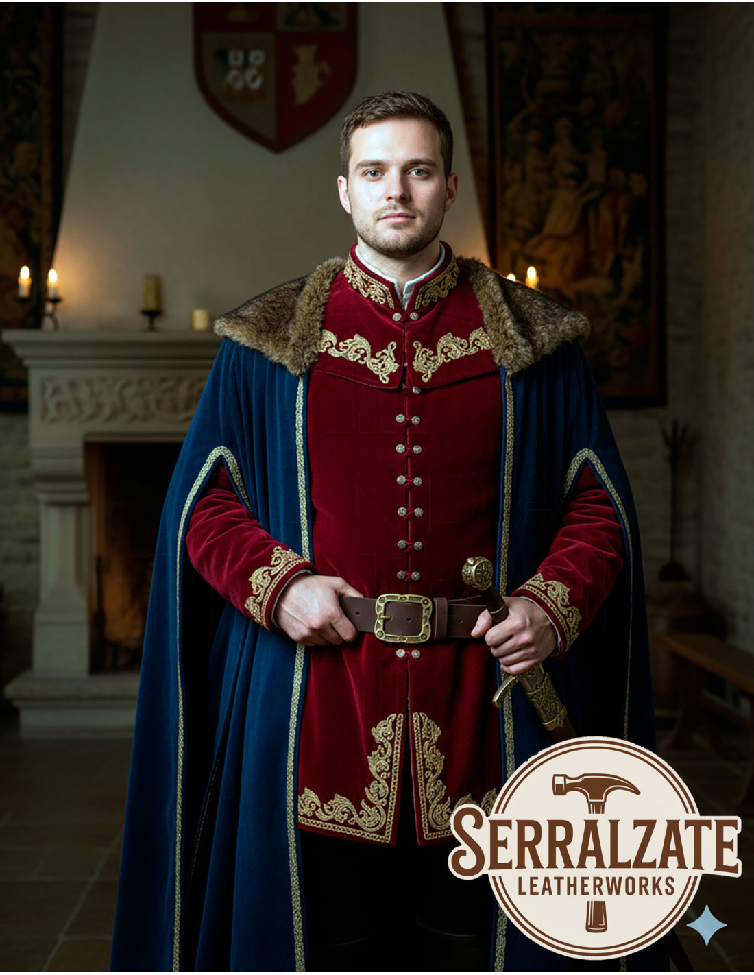 La ceinture médiévale Mateo en cuir marron est une pièce unique qui allie durabilité et élégance dans un design robuste et raffiné. Cette ceinture est segmentée et équipée de rivets solides qui lui confèrent une grande stabilité, parfaite pour un ajustement confortable et sécurisé sans perdre de style. Sa boucle en métal décorée en Zamak ajoute une touche sophistiquée, rehaussant la finition générale de la ceinture.